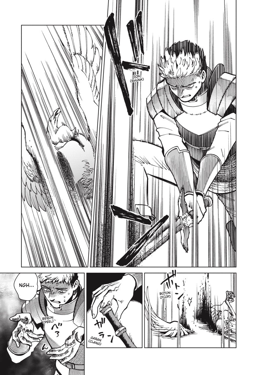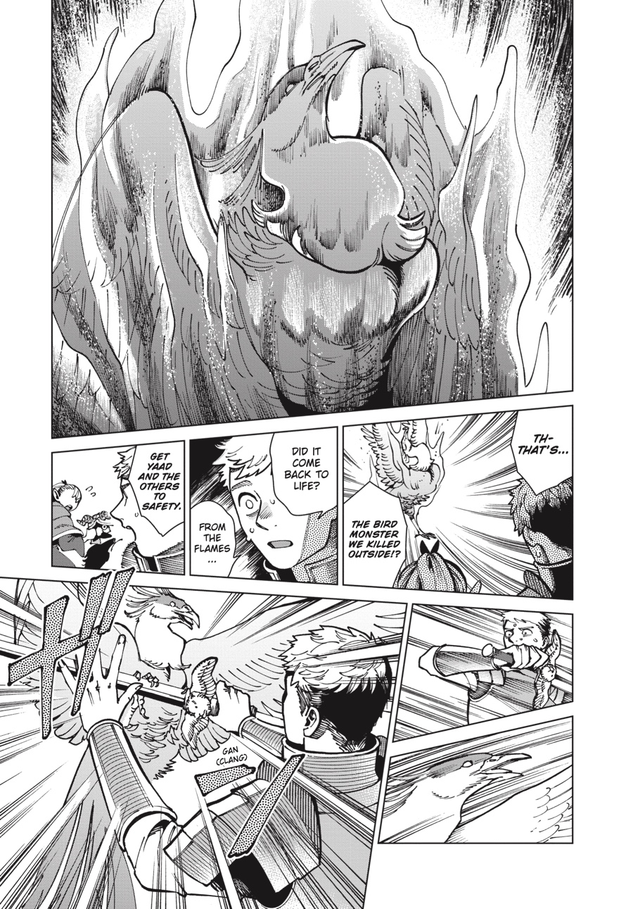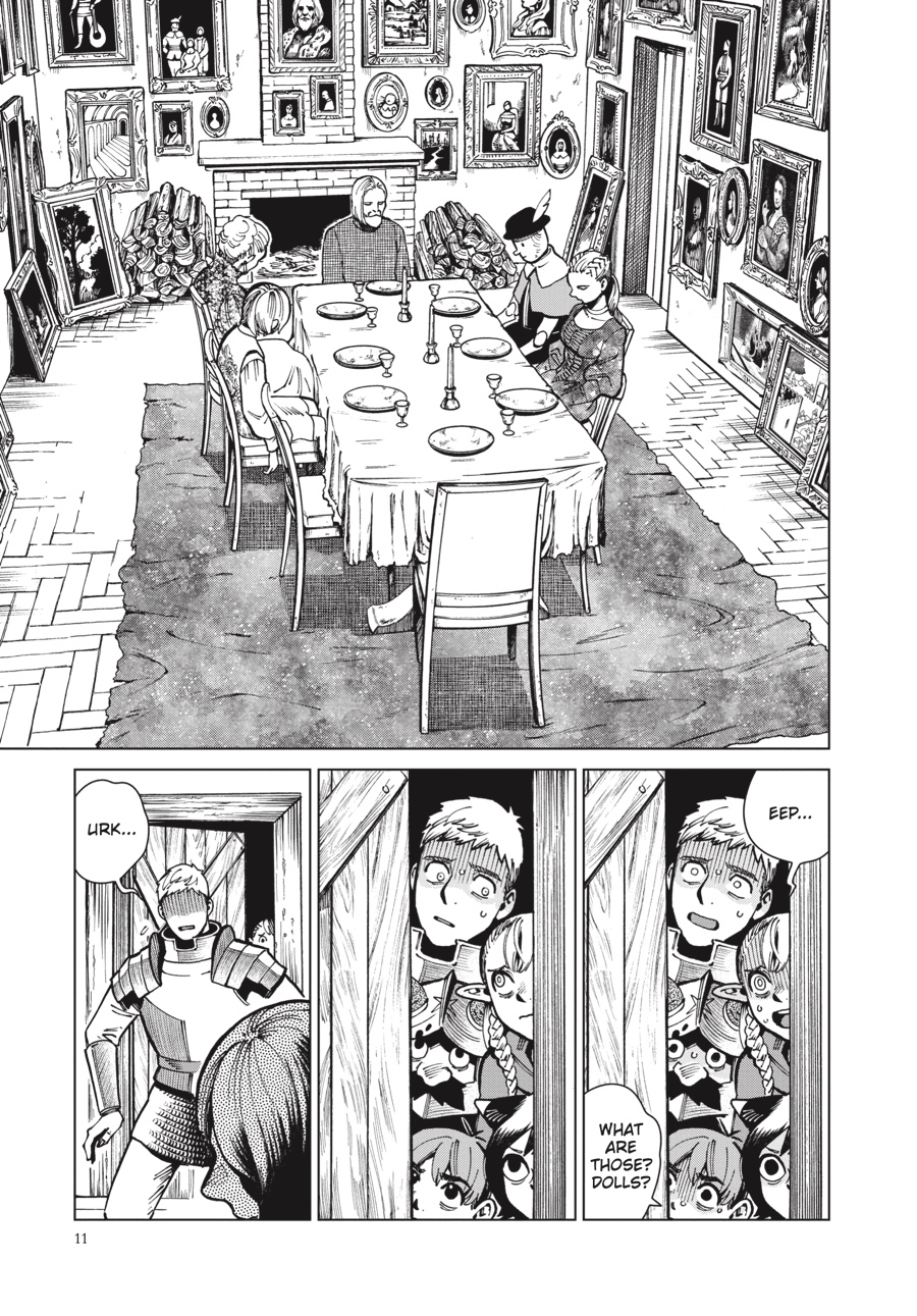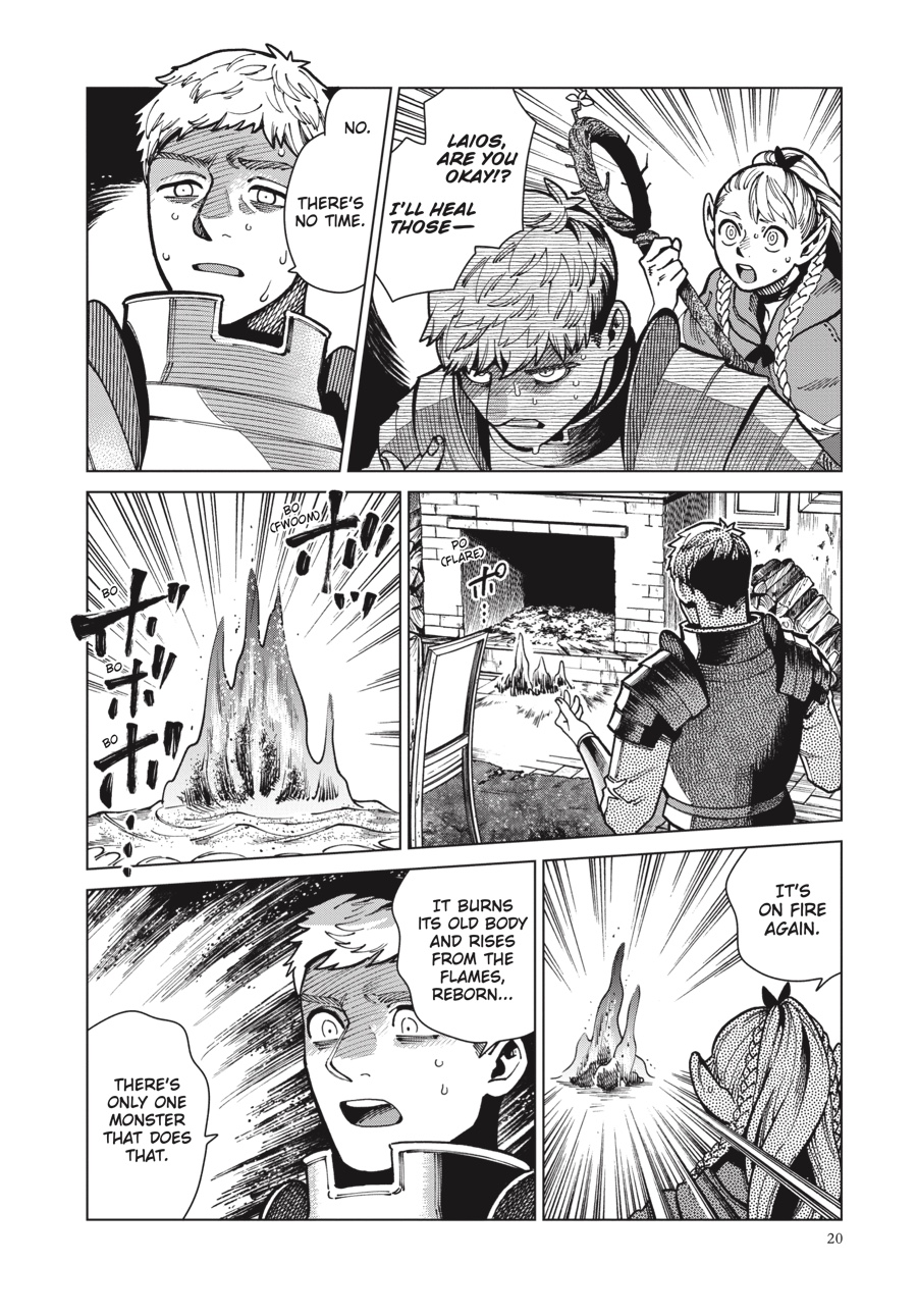 It’s eat or be eaten...literally! Led to Sissel’s threshold by the winged lion imprisoned within it, Laios and friends steel themselves for…some heavy-duty cleaning?! Sissel’s seemingly innocuous cottage is piled with clutter, hindering both their search for the lion and their meal prep! Once satiated, the party hastily lays plans for Falin’s rescue. However, here in the depths of the dungeon, even the cutest residents have a vicious streak a mile wide!
