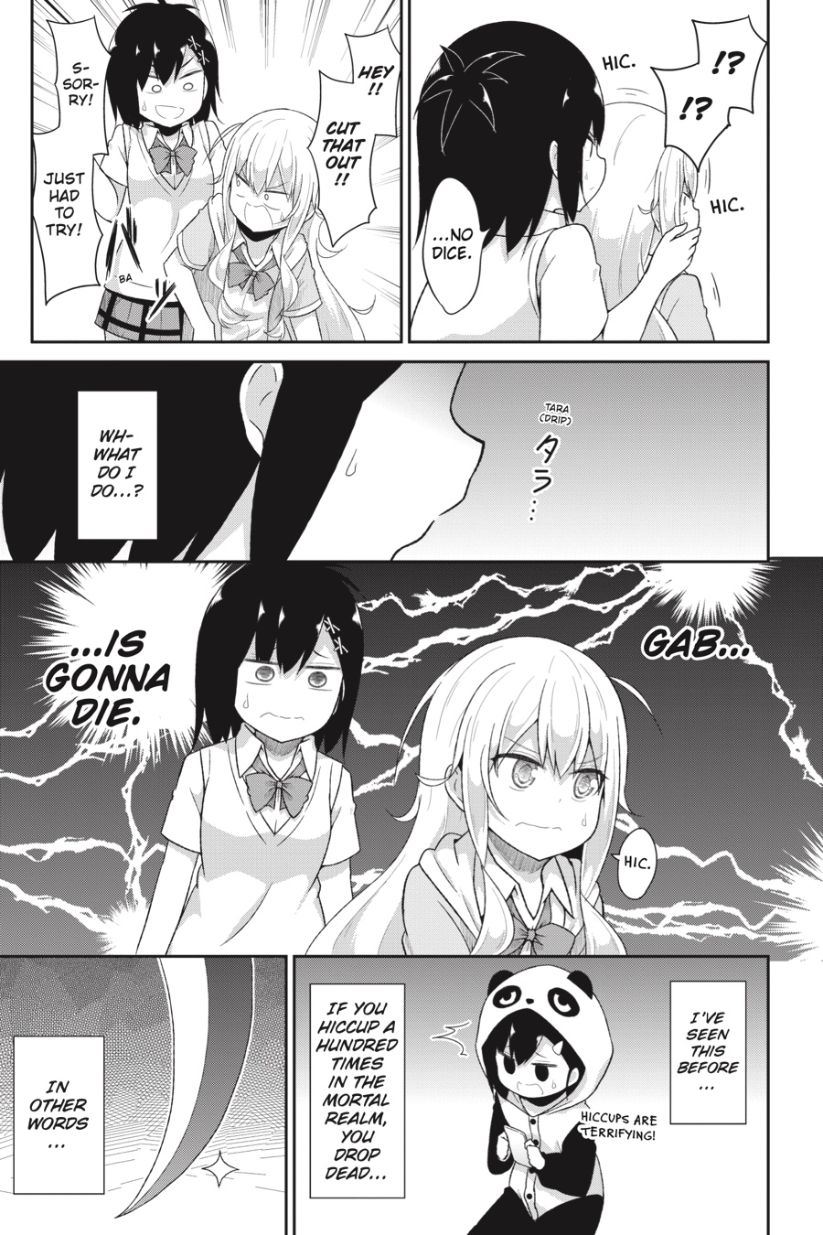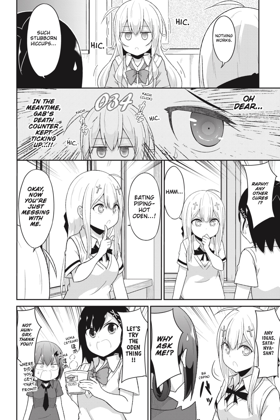 Gabriel’s got the hiccups, and Vigne’s convinced that she’ll die after a hundred of them! With plenty of possible remedies to test and a desperate demon for a nurse, Gab’s in for a rough round of treatment! Meanwhile, Satanya’s taken up the art of hypnosis in her spare time, but when it backfires, she turns into a veritable angel herself! Without a surefire way to reverse the effects, will Satanya be forced to live out the rest of her days as her worst nightmare: a kind and gentle soul?!