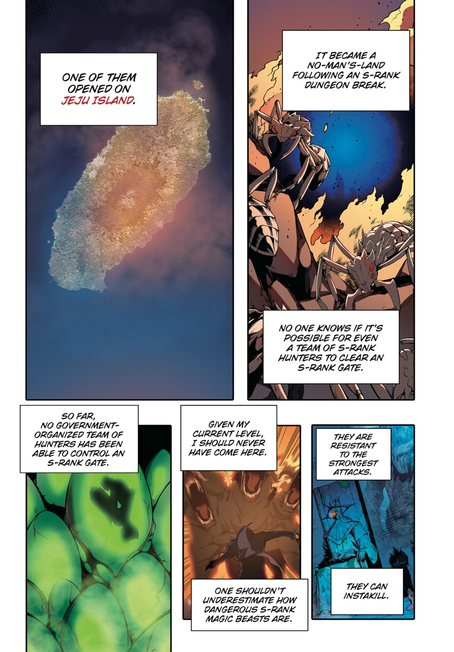 Thus far, Jinwoo has managed to keep his rapid evolution hidden from his fellow hunters. When he arrives at his latest assignment, though, he is greeted by a group of familiar faces-Joohee, Mr. Song, and the other survivors of the double dungeon are gathered for the raid, and his comrades can’t help but notice Jinwoo’s drastic change in stature! Jinwoo intends to act the weakling he was before, but when their party is joined by a group of criminals and their association minder, Jinwoo may have no choice but to push his newly acquired skills to the limit if he and his friends want to get out alive!