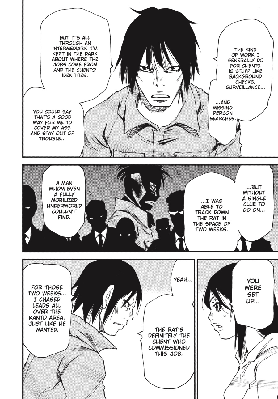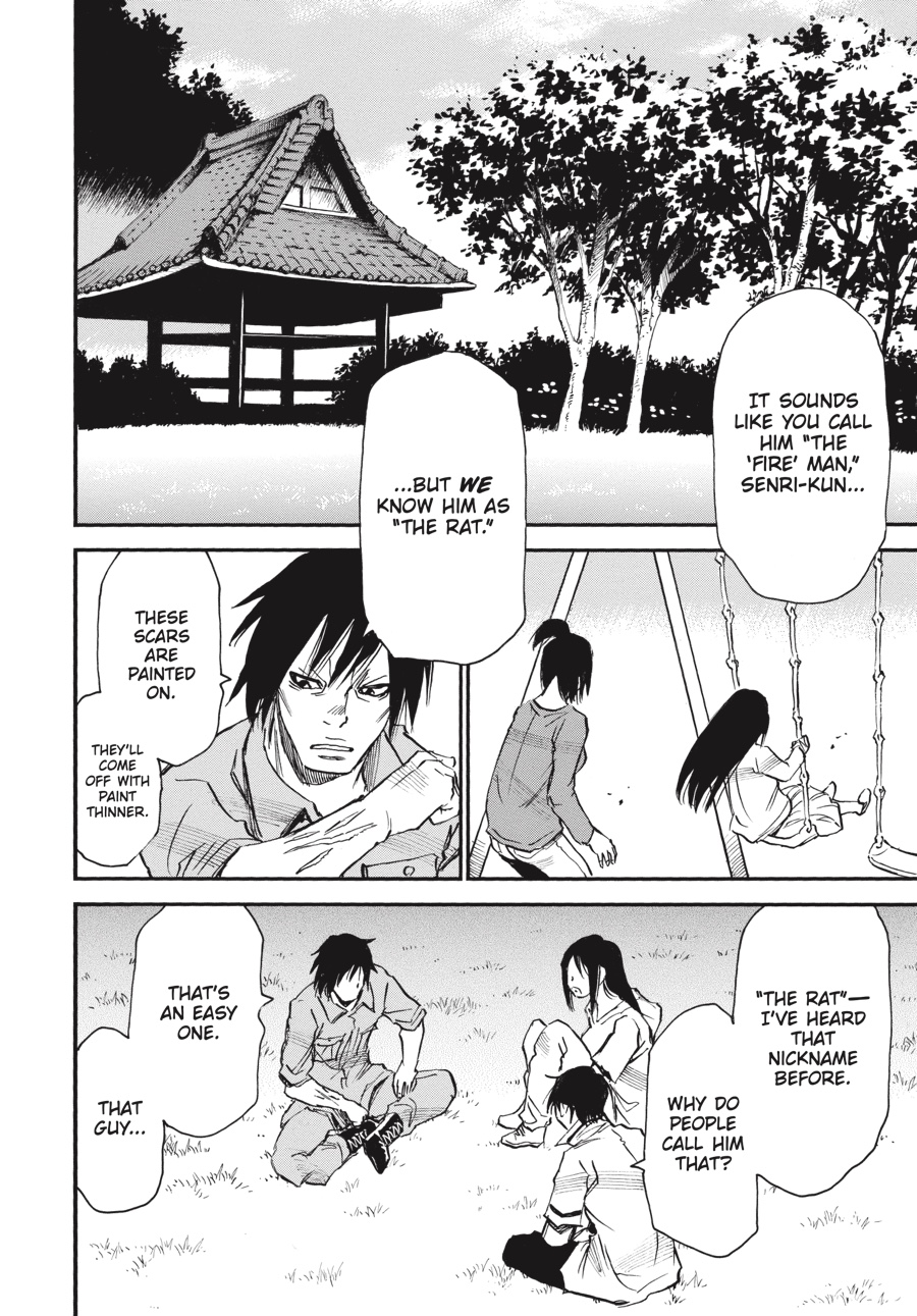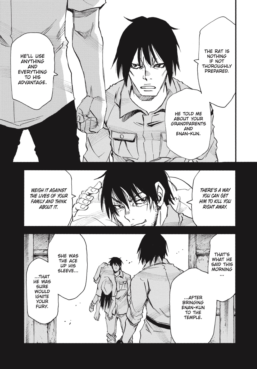 Though the “fire” man’s trap would have forced Senri to join Kazuto as his murderous partner in crime, Senri manages to keep his cool, sparing the person he was meant to kill. Safely reunited thanks to the twins, the rat imposter and his family are able to provide new details about Kazuto-and, more importantly, a handwritten note! Kazuto’s words are the first Senri has heard from his brother in over a decade, but while they confirm some theories, Senri is still no closer to finding out where Kazuto is...or what he might be planning next!
