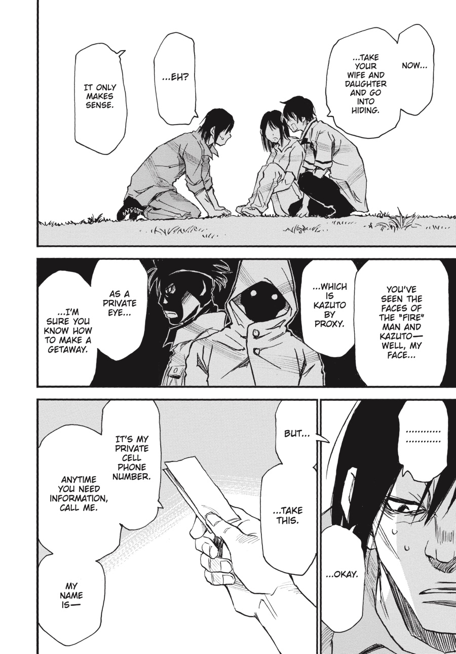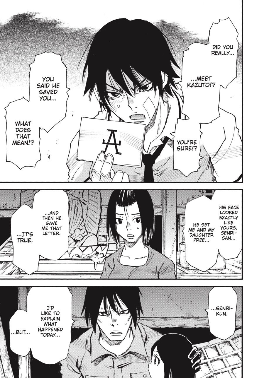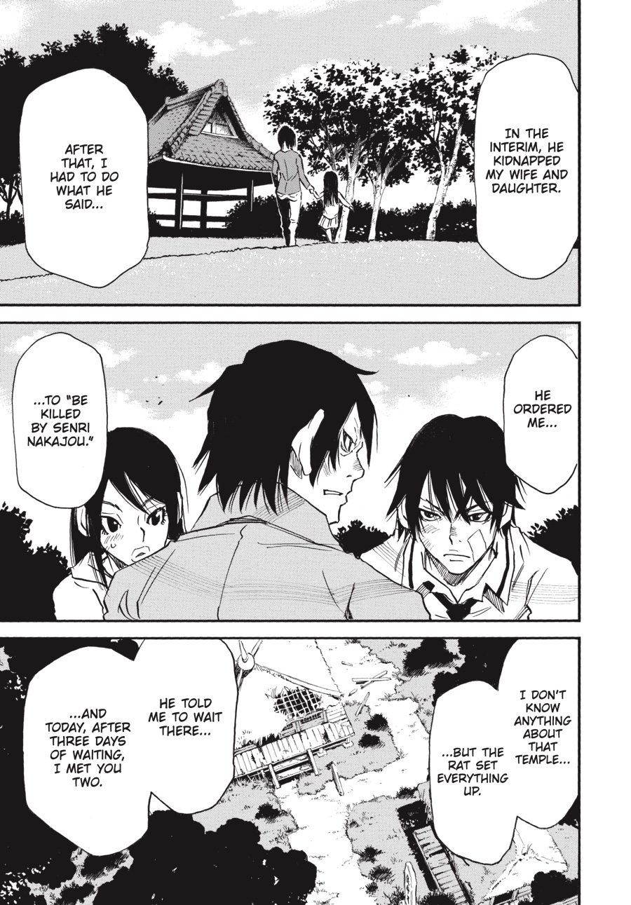 Though the “fire” man’s trap would have forced Senri to join Kazuto as his murderous partner in crime, Senri manages to keep his cool, sparing the person he was meant to kill. Safely reunited thanks to the twins, the rat imposter and his family are able to provide new details about Kazuto-and, more importantly, a handwritten note! Kazuto’s words are the first Senri has heard from his brother in over a decade, but while they confirm some theories, Senri is still no closer to finding out where Kazuto is...or what he might be planning next!