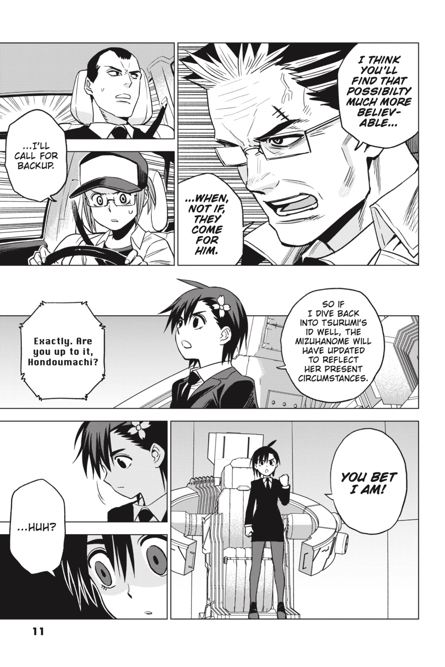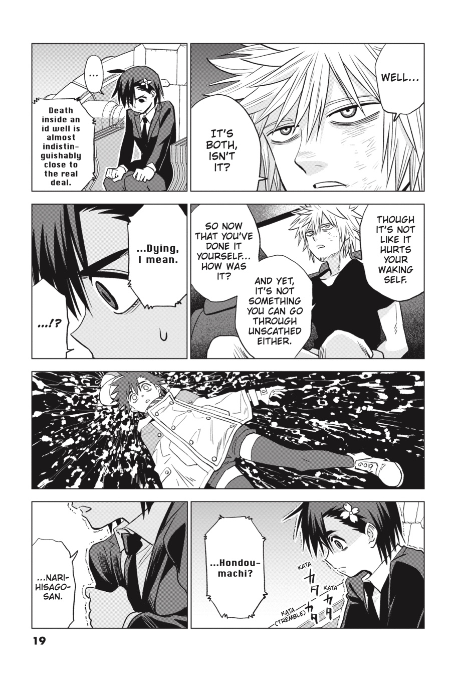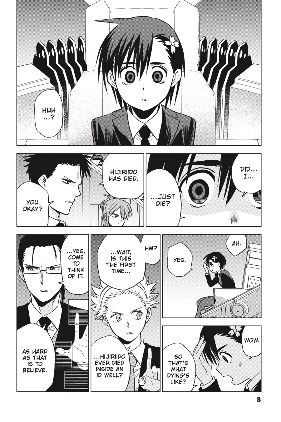 Not only has a Wakumusubi been stolen from the Kura, but now a mysterious group of masked men has abducted the “suicide princess,” Mana Tsurumi, from their custody too! As the sheer scale of this real-world conspiracy begins to take shape, a new brilliant detective is born within an id well. Will the hint they provide lodge deeply enough in Narihisago’s subconscious for his Sakaido persona to bring the truth of Tsurumi’s well to light?!
