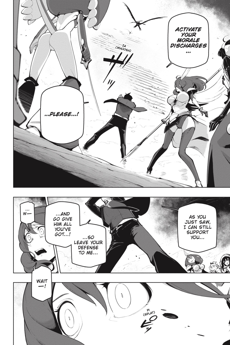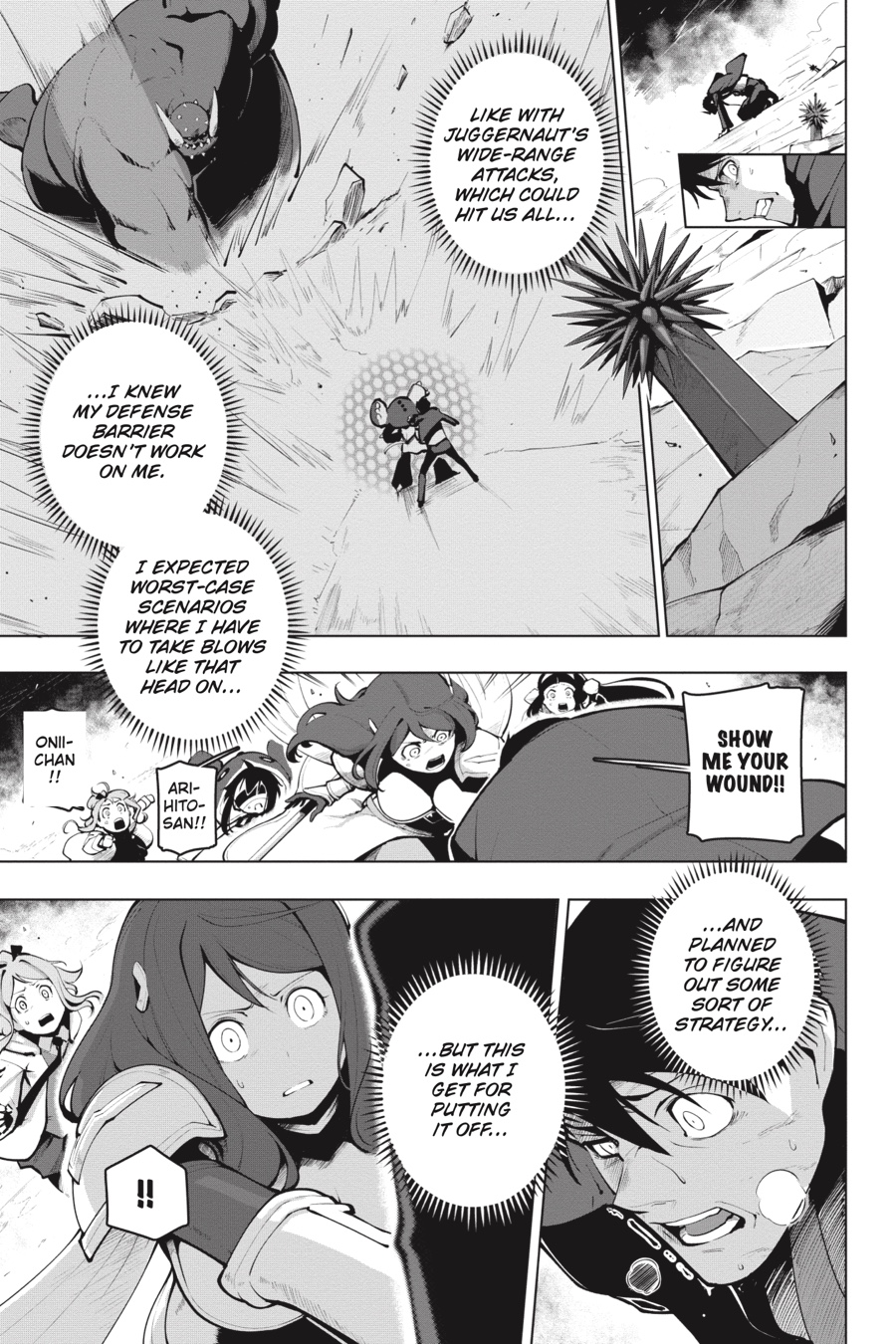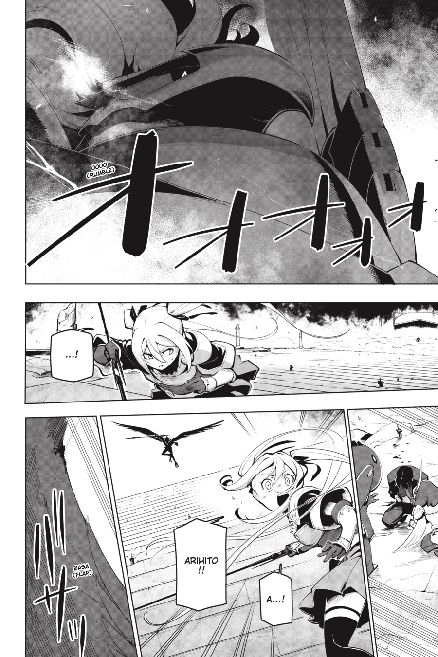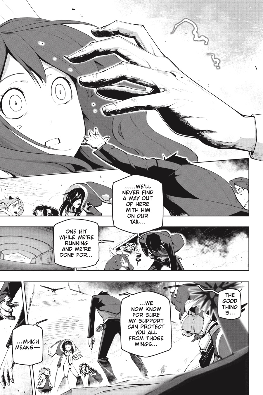 Thanks to a severe wound, Arihito is all too aware that his rearguard powers have one major flaw: He can’t use them for personal protection! Now it’s up to Kyouka and the rest of the party to support him, but can they overcome the Field of Dawn’s mighty gatekeeper, the Giant Eagle- Headed Warrior? Victory would mean discovering powerful secrets about the world-including the reason they were all brought to the Labyrinth Country in the first place!