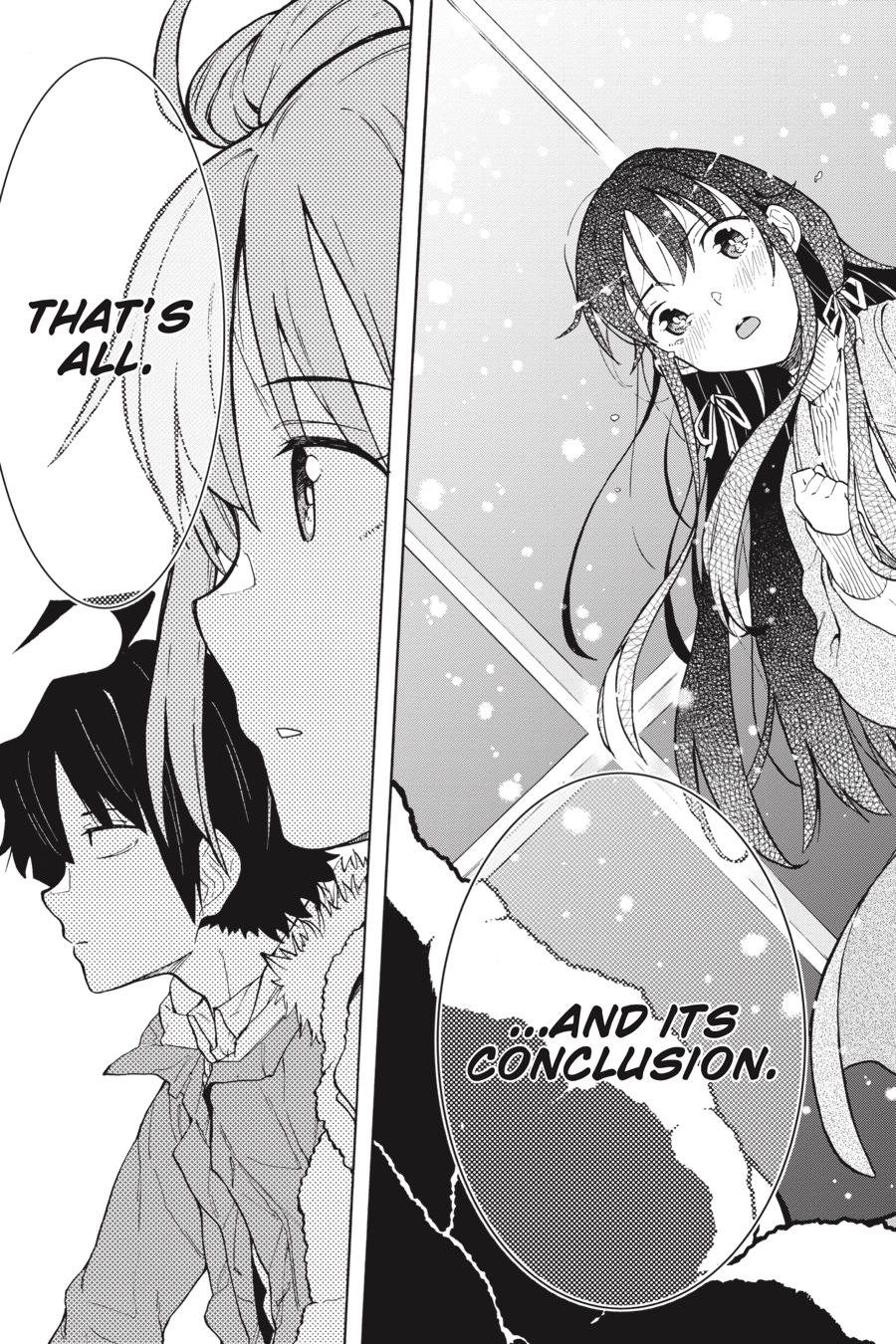 After sharing her family history with Hachiman and Yui, Yukino asks for one final request: to watch her as she works to exceed her parents’ expectations. Not long after, Isshiki Iroha visits the trio looking to jazz up the annual celebration for the graduating seniors…by throwing a Western-style prom! Yukino sees this as a chance to prove herself and agrees to help, but there’s a catch -- she wants to do it alone rather than as part of the Service Club! While few can doubt Yukino’s capabilities, is she in over her head…? The final arc of this off-kilter youth romantic comedy begins!