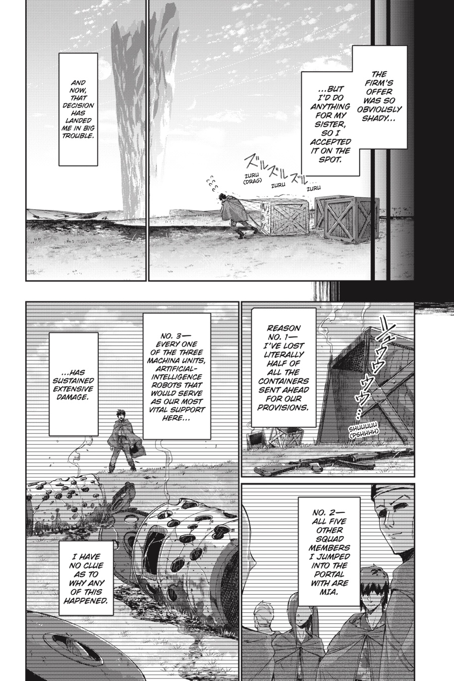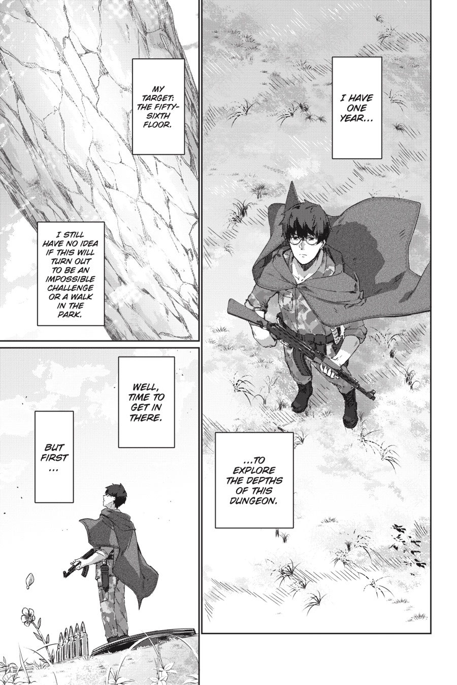 Souya, desperate for cash to pay his little sister’s medical expenses, has an offer from a shady company fall into his lap—more than enough money for only a year of work…on the other side of a portal to another dimension, where he’ll have to ascend to the fifty-sixth floor of a dungeon! Worse, his gig-work stint as a fantasy world adventurer gets off on the wrong foot when the transfer process malfunctions, stranding him without supplies! Will his otherworld adventure end before it even begins…?