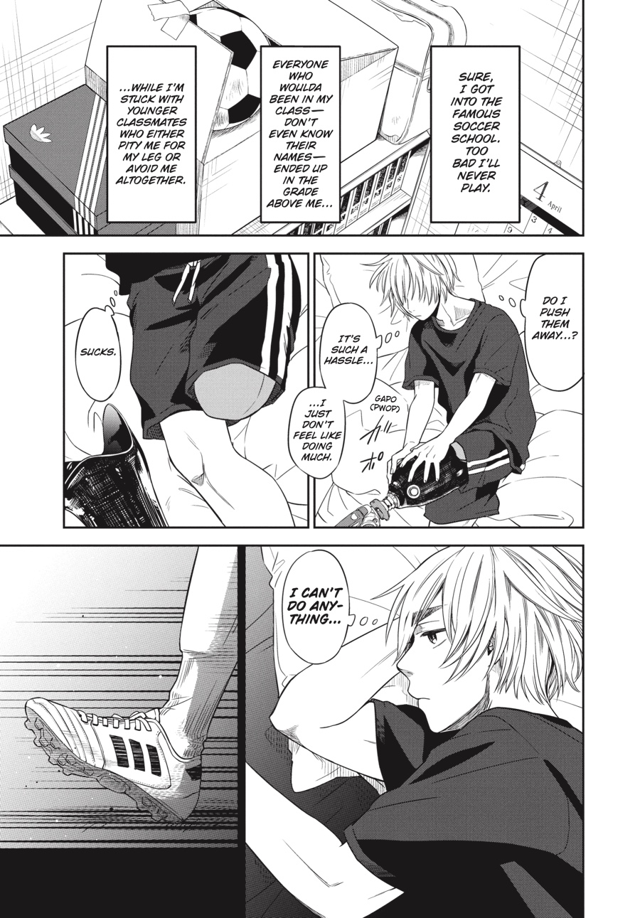 Shouta Kikuzato’s hopes of starting on his school’s prestigious soccer team are derailed when a terrible incident costs him his leg. Now in his first year of high school (again), Kikuzato has resigned himself to never reaching his athletic dreams. But when Chidori, a passing prosthetist, notices Kikuzato’s artificial limb- and speed-as he races through the train station, the specialist proposes a partnership: Chidori will build Kikuzato a brand-new leg designed solely for speed. All Kikuzato has to do is run!