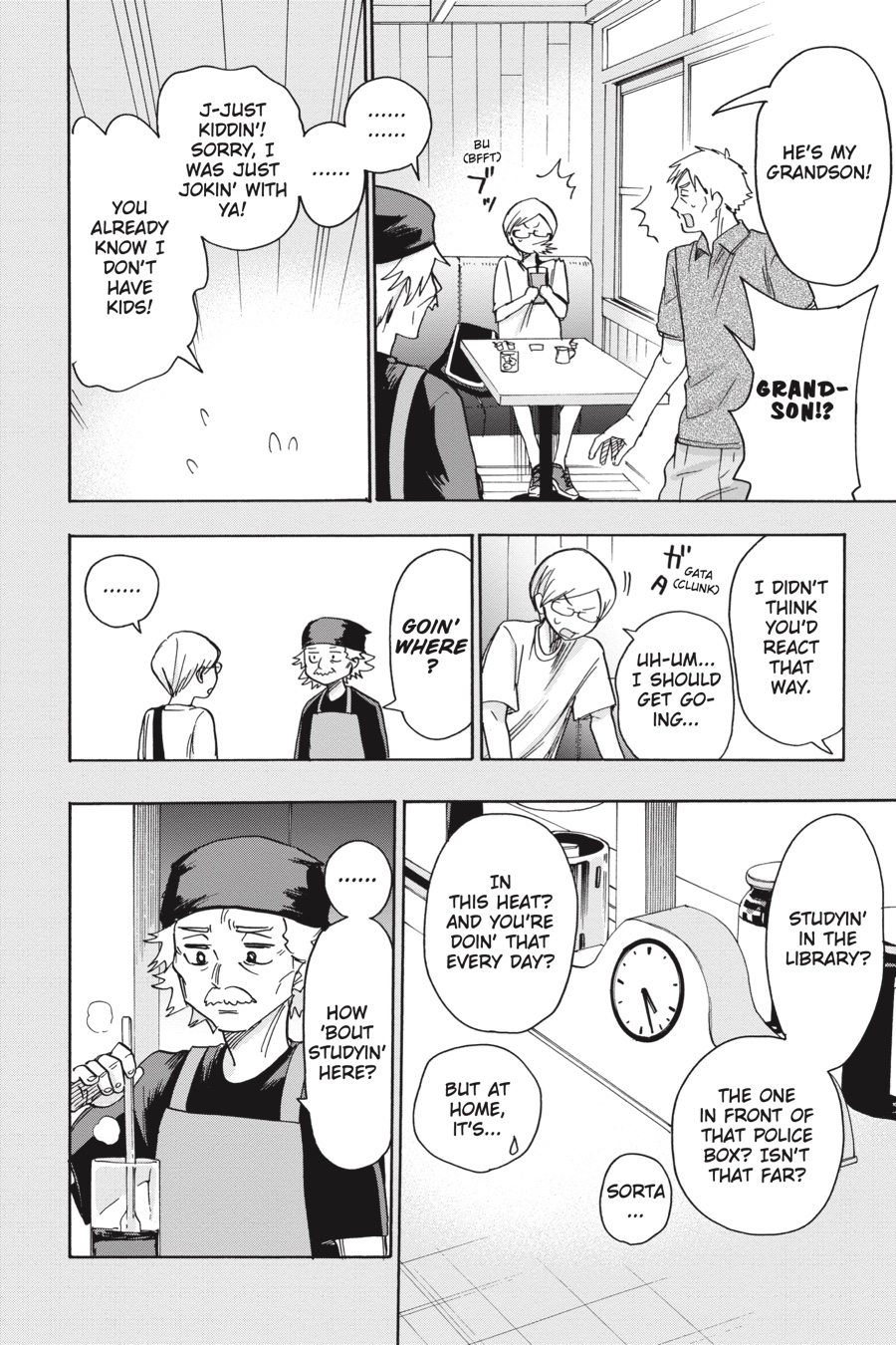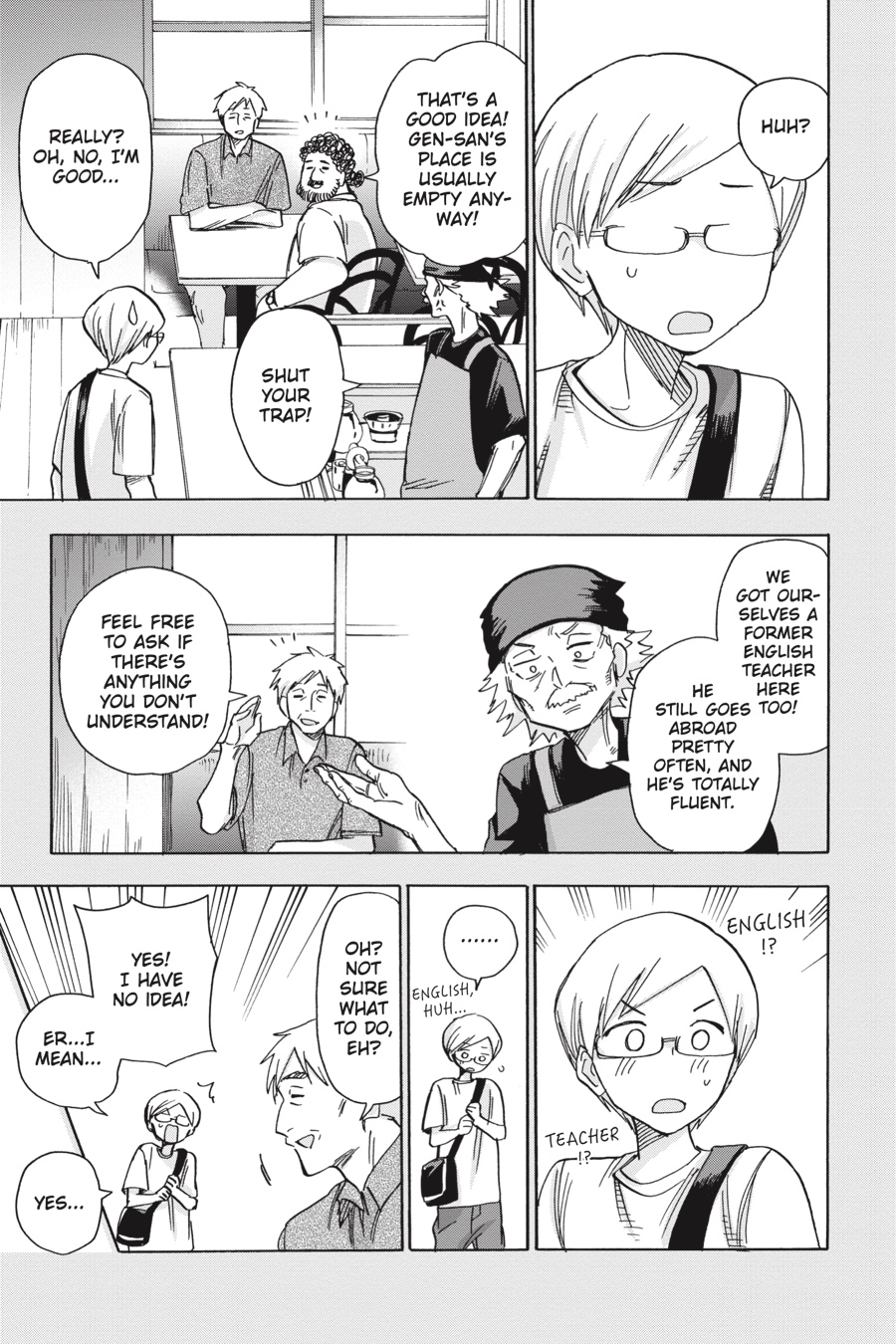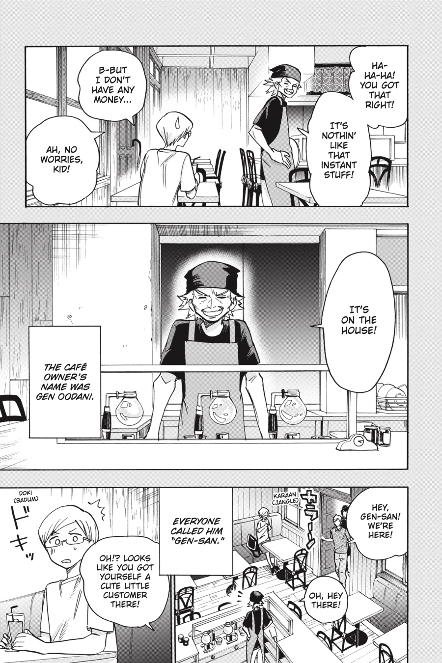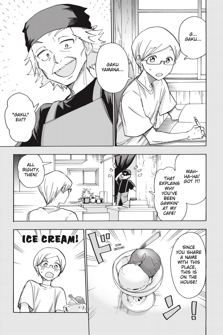 Take a peek into the past as Gaku recalls his first music festival! After stumbling upon a café that shares his name, he’s invited by the elderly owner to come along to an overnight camping festival. Gaku doesn’t know what to expect, but his heart is stolen by the sights and sounds he finds there…!