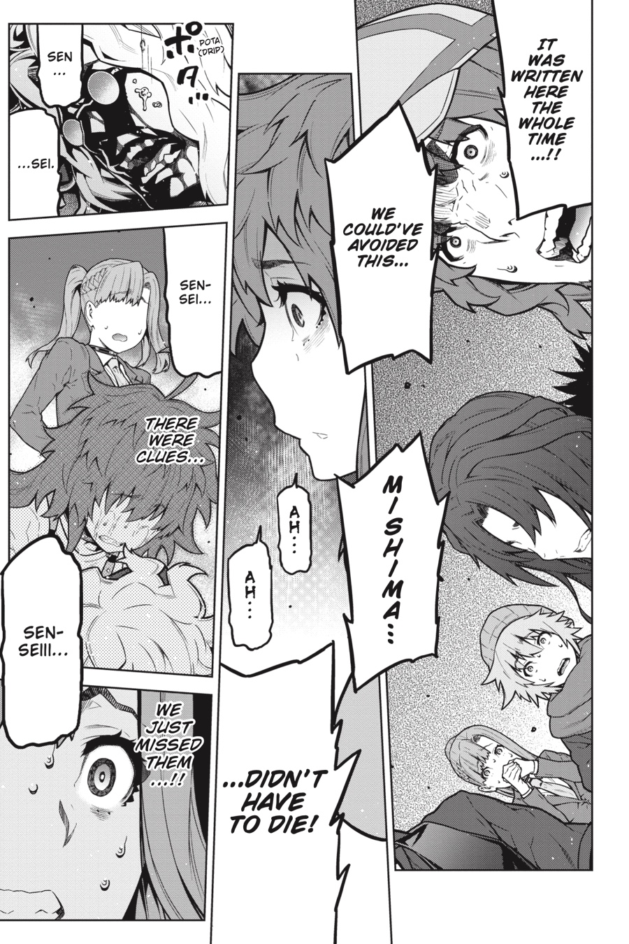 The sudden death of Mishima has thrown everyone trapped in this strange facility-but most of all his former student Nao-into despair. They have no choice but to keep searching together for some way to escape, but paranoia and doubt are beginning to take hold of them...
