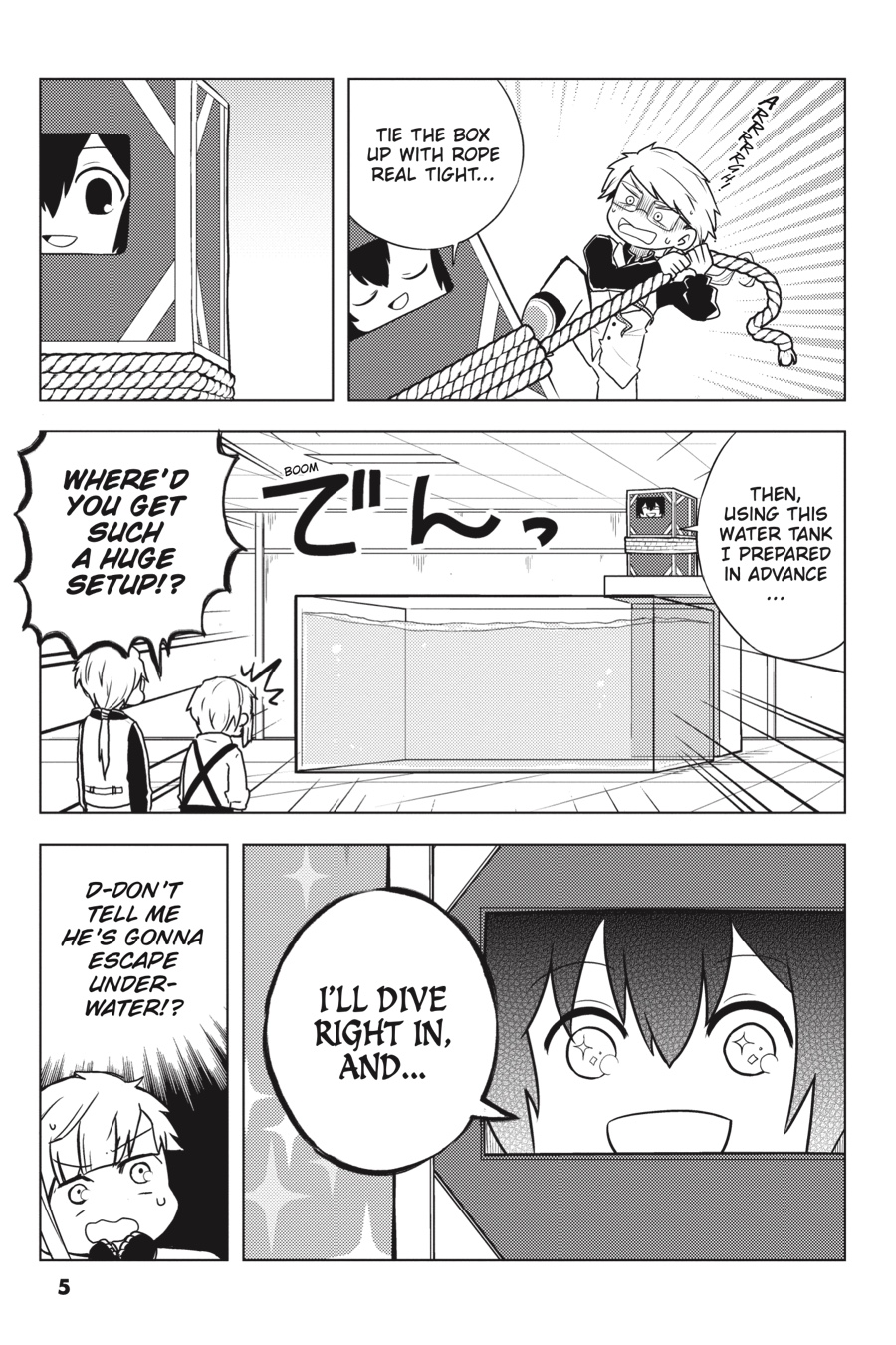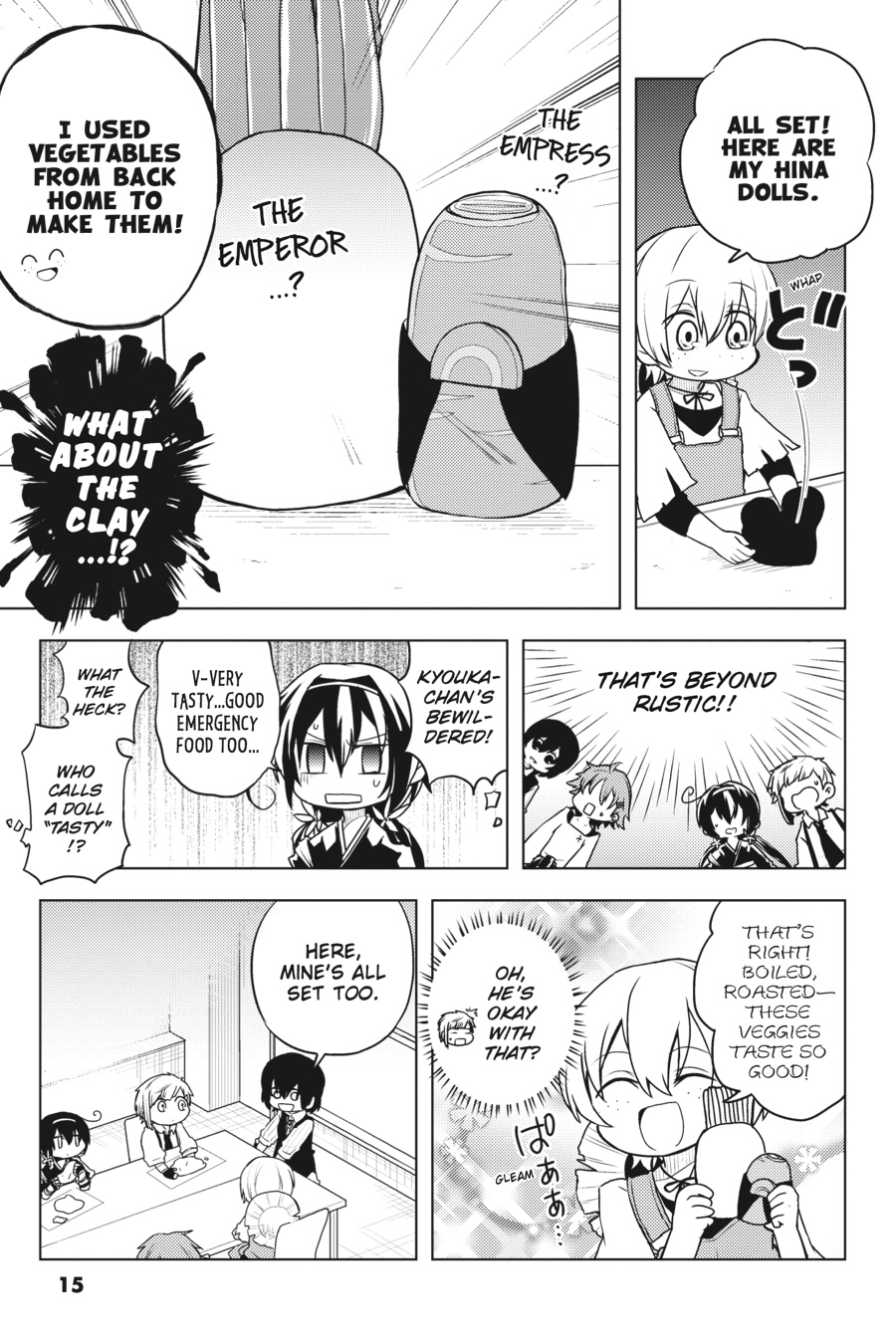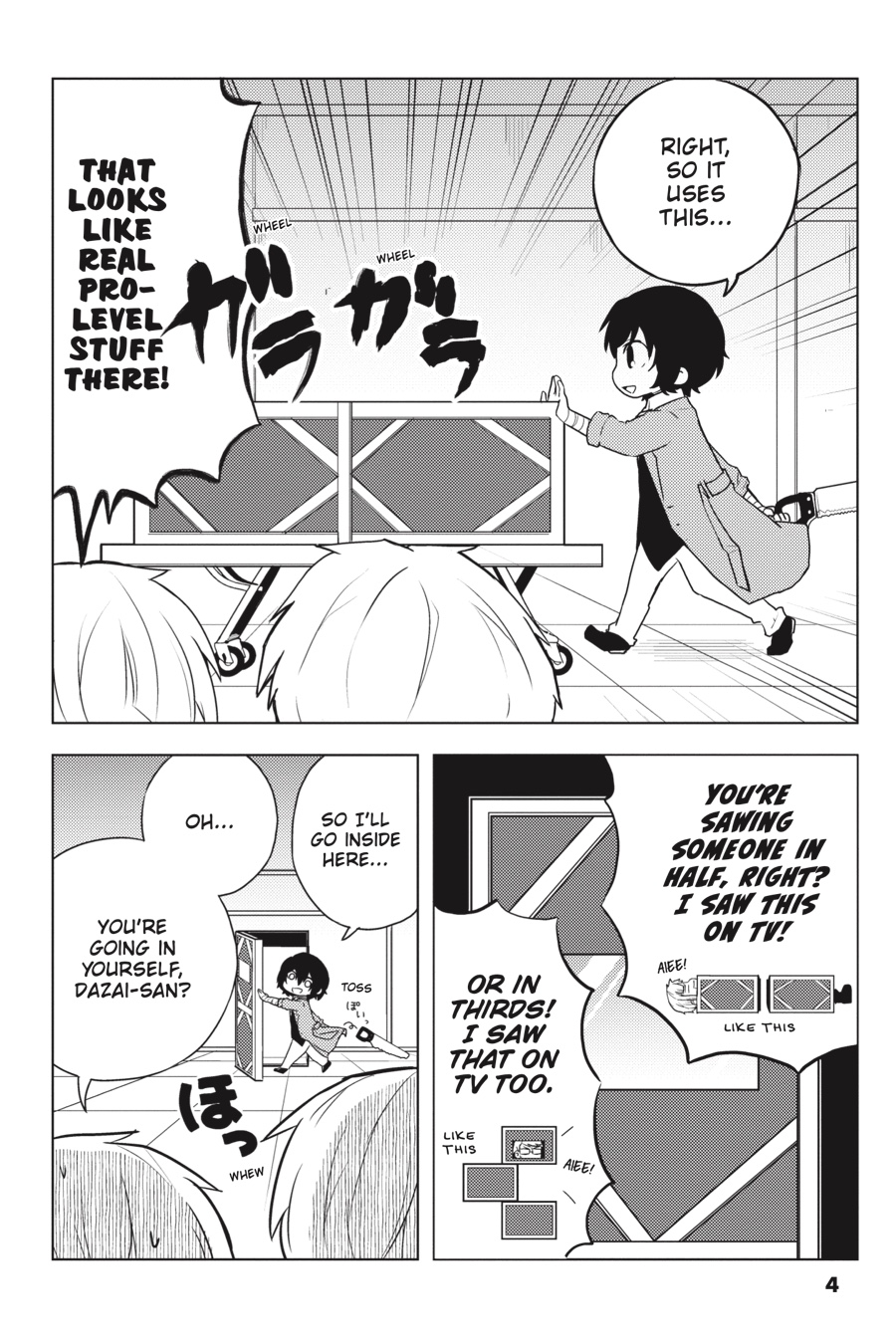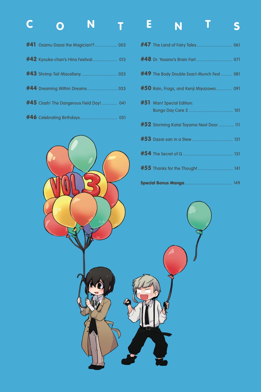 It ’s another peaceful day in Yokohama, but the Armed Detective Agency and the Port Mafia are staying busy. Whether it ’s Dazai per forming his best magic tricks, the Mafia trying to find a body double for the boss, or the two organizations holding a joint spor ts festival, these heartwarming (?) stories from the world of Bungo Stray Dogs are sure to put a smile on your face!