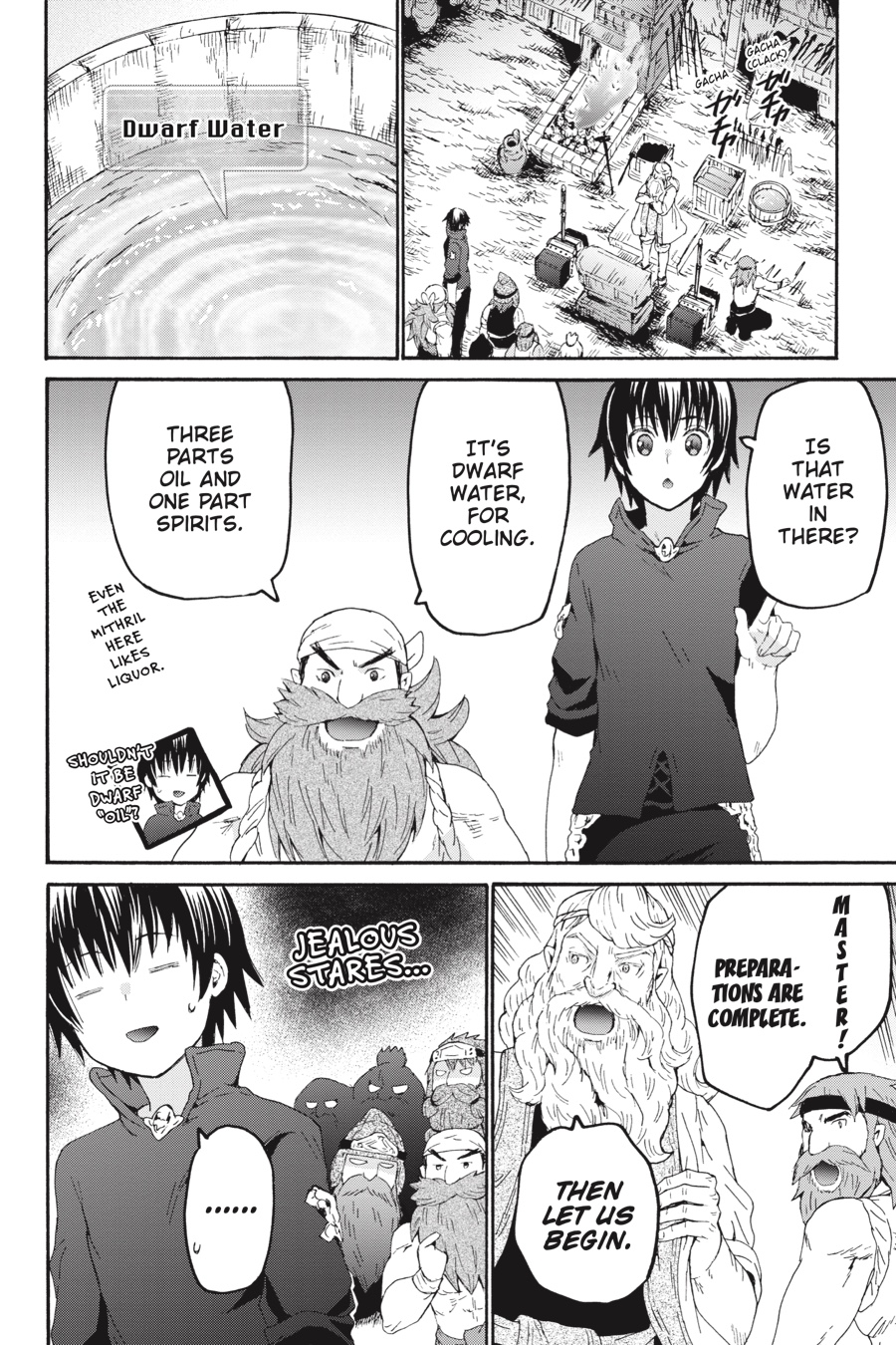 When Elder Dohal, lord of the dwarves, asks Satou to help forge a powerful new sword, his smithing skills are put to the test. After a long night sweating over the anvil, Satou’s new sword is finished, and its power is like nothing he’s ever seen before. But there’s no time for swordplay, as Bolehart City beckons, and its streets are replete with delicious food, skilled craftsmen, and new spells to purchase!