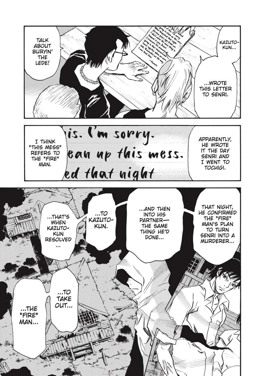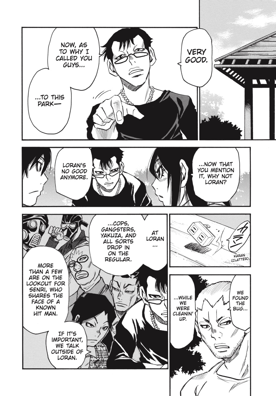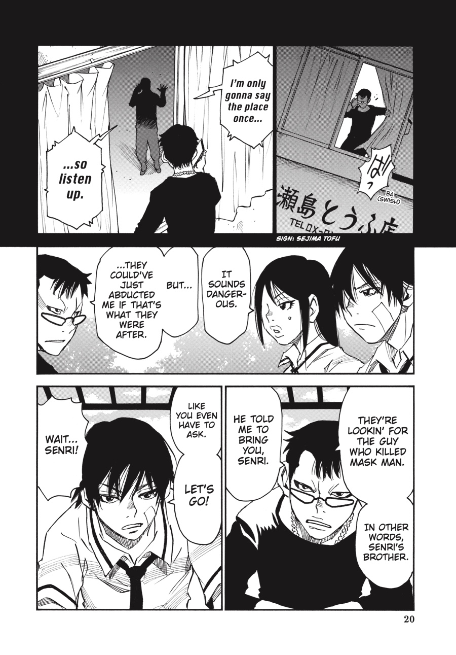 Through Kazuto’s eyes, Senri sees more clearly why his brother has begun stepping away from the murderous path laid out for him by the rat. Risking a meeting with Mask Man’s associates, who have their own reasons for wanting to find Kazuto, Senri discloses his suspicions of a Three- Eyes copycat in hopes of uncovering new information that will lead to his twin. What he learns will confirm his theory, but it will also place the threat much closer to home...