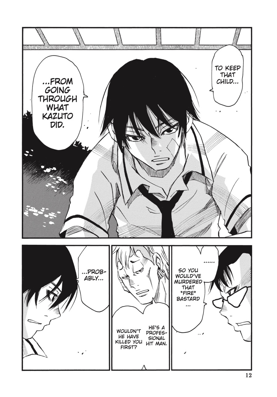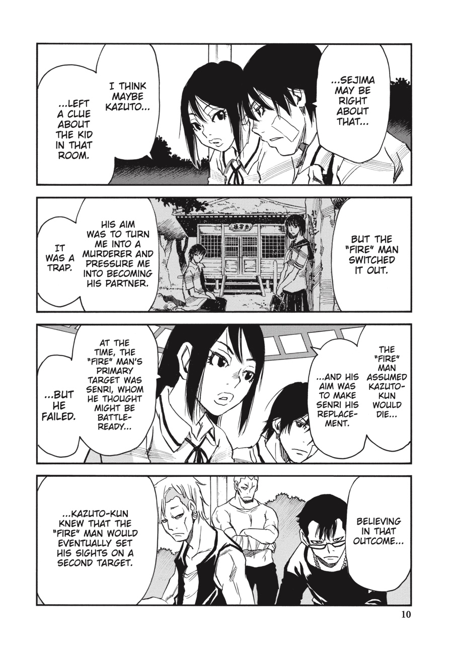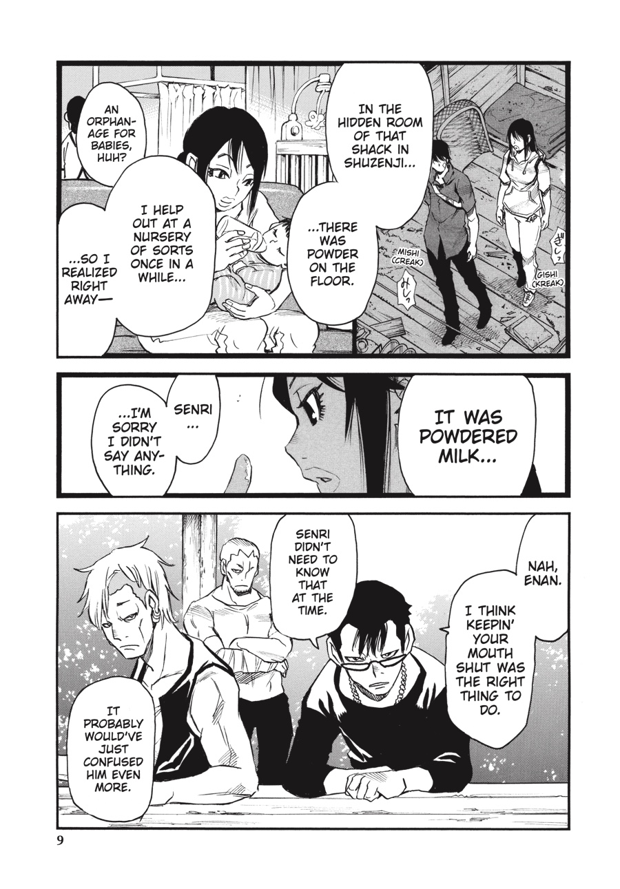 Through Kazuto’s eyes, Senri sees more clearly why his brother has begun stepping away from the murderous path laid out for him by the rat. Risking a meeting with Mask Man’s associates, who have their own reasons for wanting to find Kazuto, Senri discloses his suspicions of a Three- Eyes copycat in hopes of uncovering new information that will lead to his twin. What he learns will confirm his theory, but it will also place the threat much closer to home...