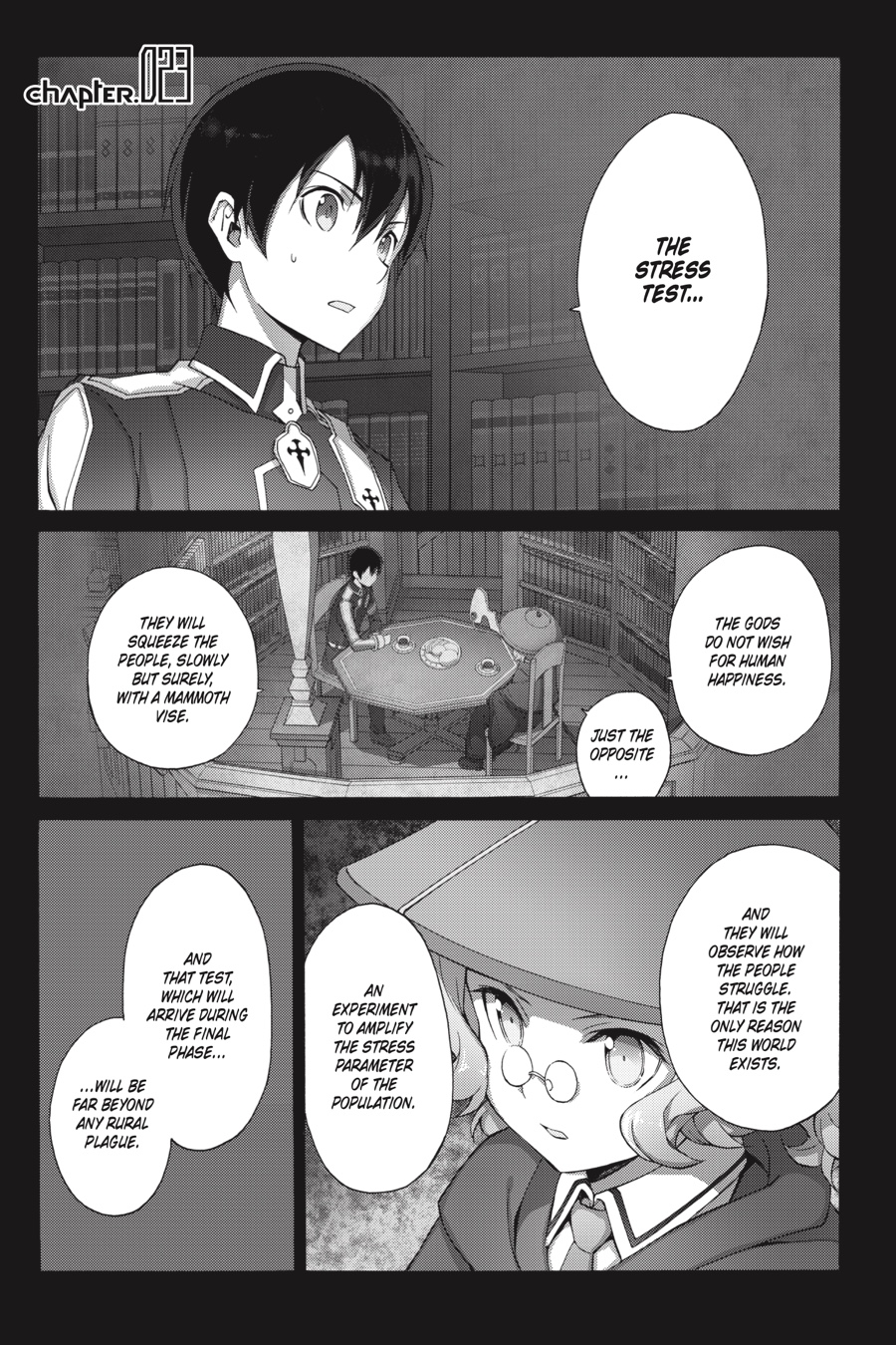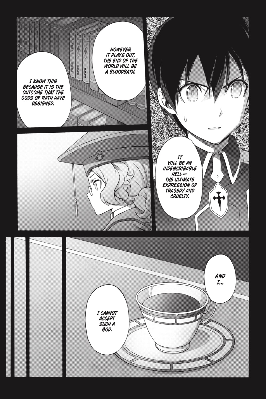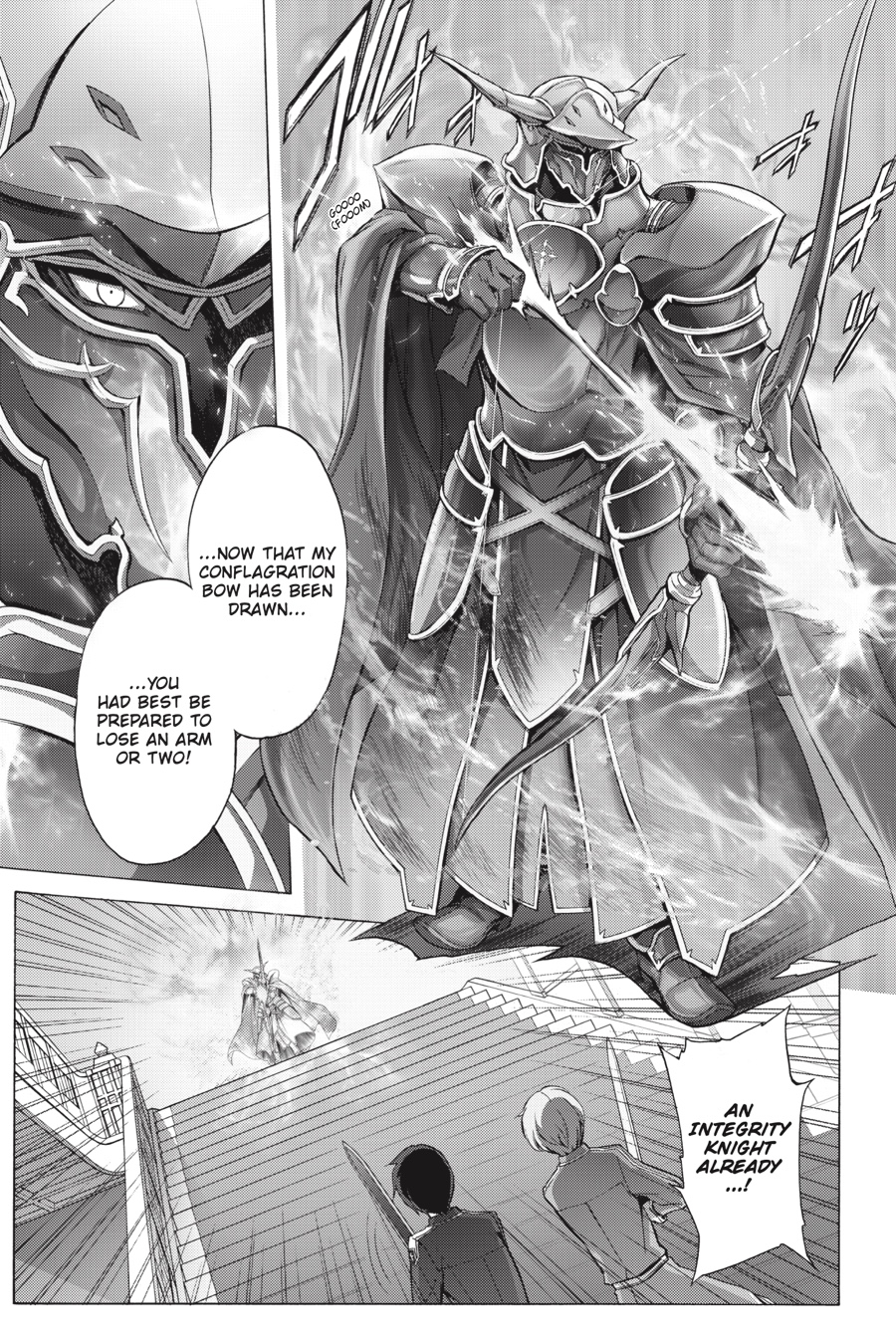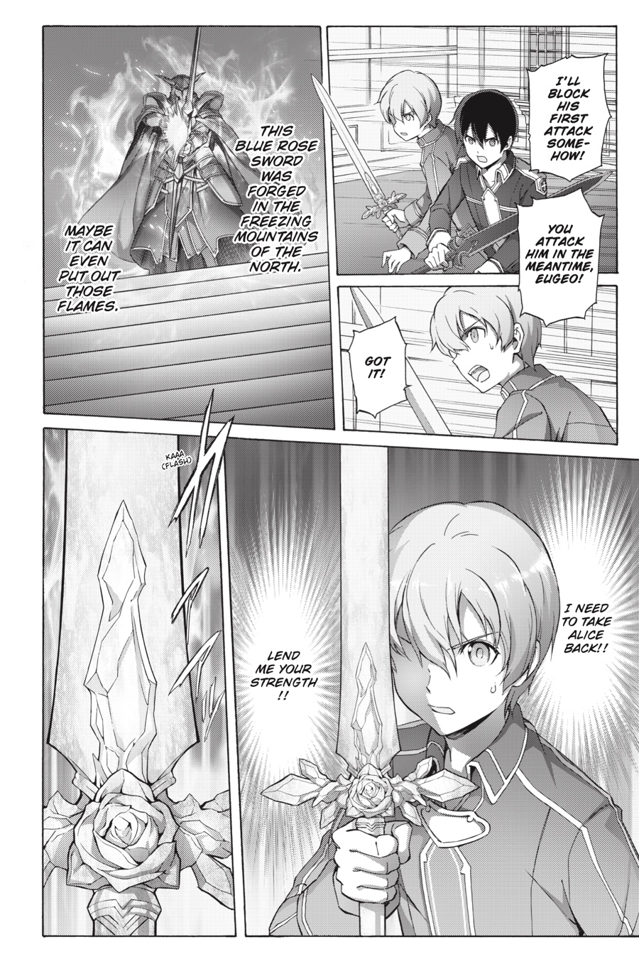 After speaking with Cardinal, Kirito faces many unpleasant truths, and all ofthem lead to Quinella, the Administrator of the Underworld. Her unfathomable power makes her virtually untouchable, but if Kirito wants to have a chance at stopping her, he’ll first need to ascend Central Cathedral’s many floors with Eugeo. And with Integrity Knights waiting to ambush them around every corner, that’s no easy task…