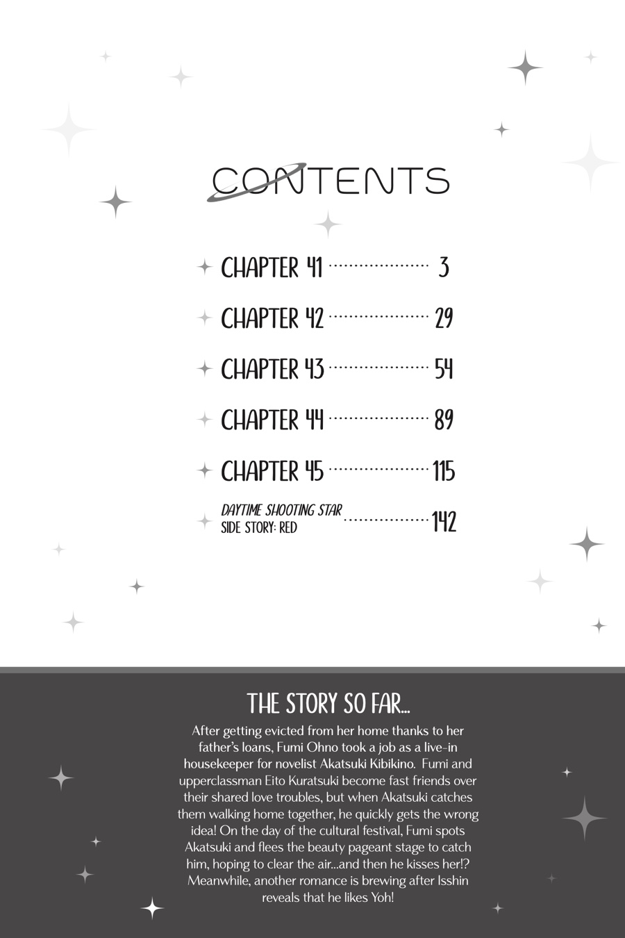 When Fumi catches up to Akatsuki at the cultural festival to clear up their misunderstandings, he responds to the flustered girl with…a kiss?! Akatsuki, clumsy with love as he is, pours his heart out to Fumi. Will this be the moment that finally brings them on the same page as a couple? Meanwhile, Yoh’s world has been rocked following Isshin’s confession, and Fumi decides it’s her turn to be her best friend’s wingwoman by pushing Yoh to ask him on a date! This volume also contains a second Daytime Shooting Star side story!