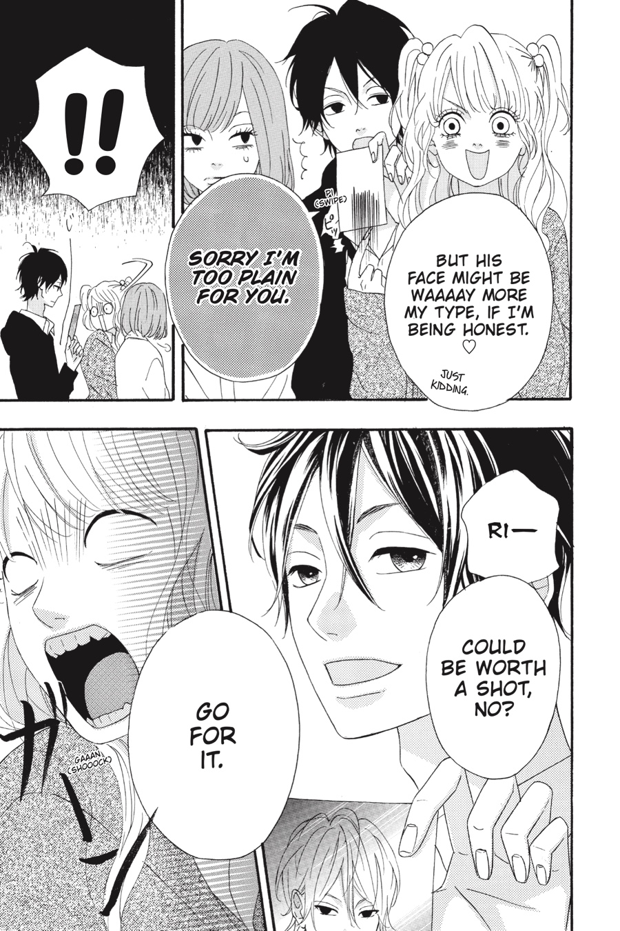 Hatori may still have a long way to go until she cements her spot as Rita’s heroine, but now that she’s finally confessed (and he’s agreed to stop avoiding her), she’s back on the playing field! ...Except, hello, who’s the hot guy who looks exactly like her favorite pop idol? And more importantly, what does he think he’s doing, brazenly hitting on a girl right in front of her potential boyfriend-to-be?!