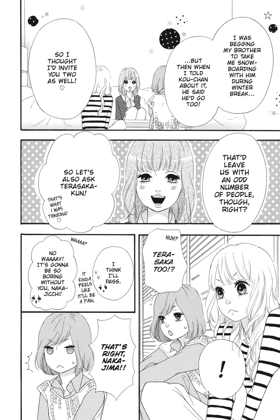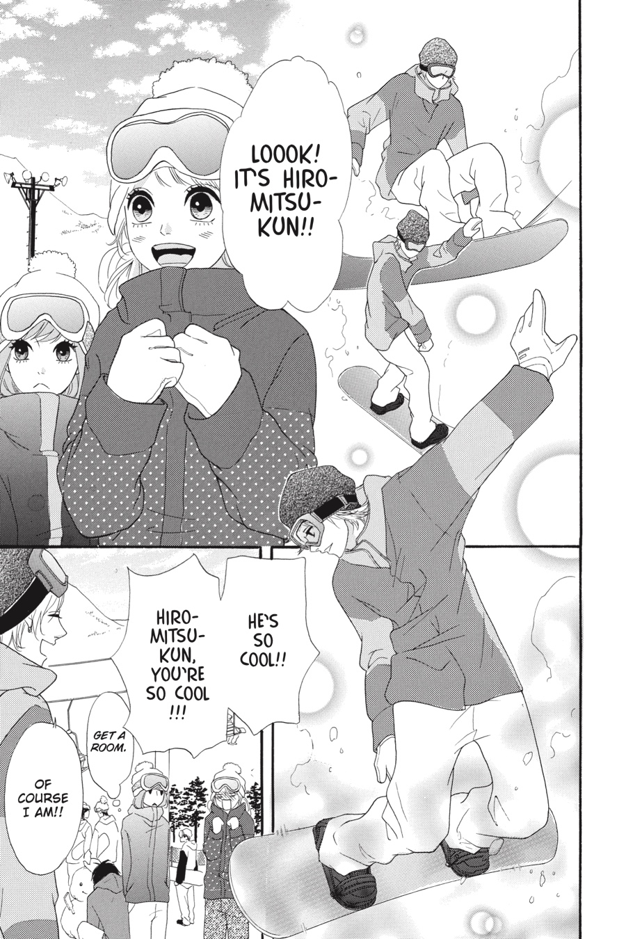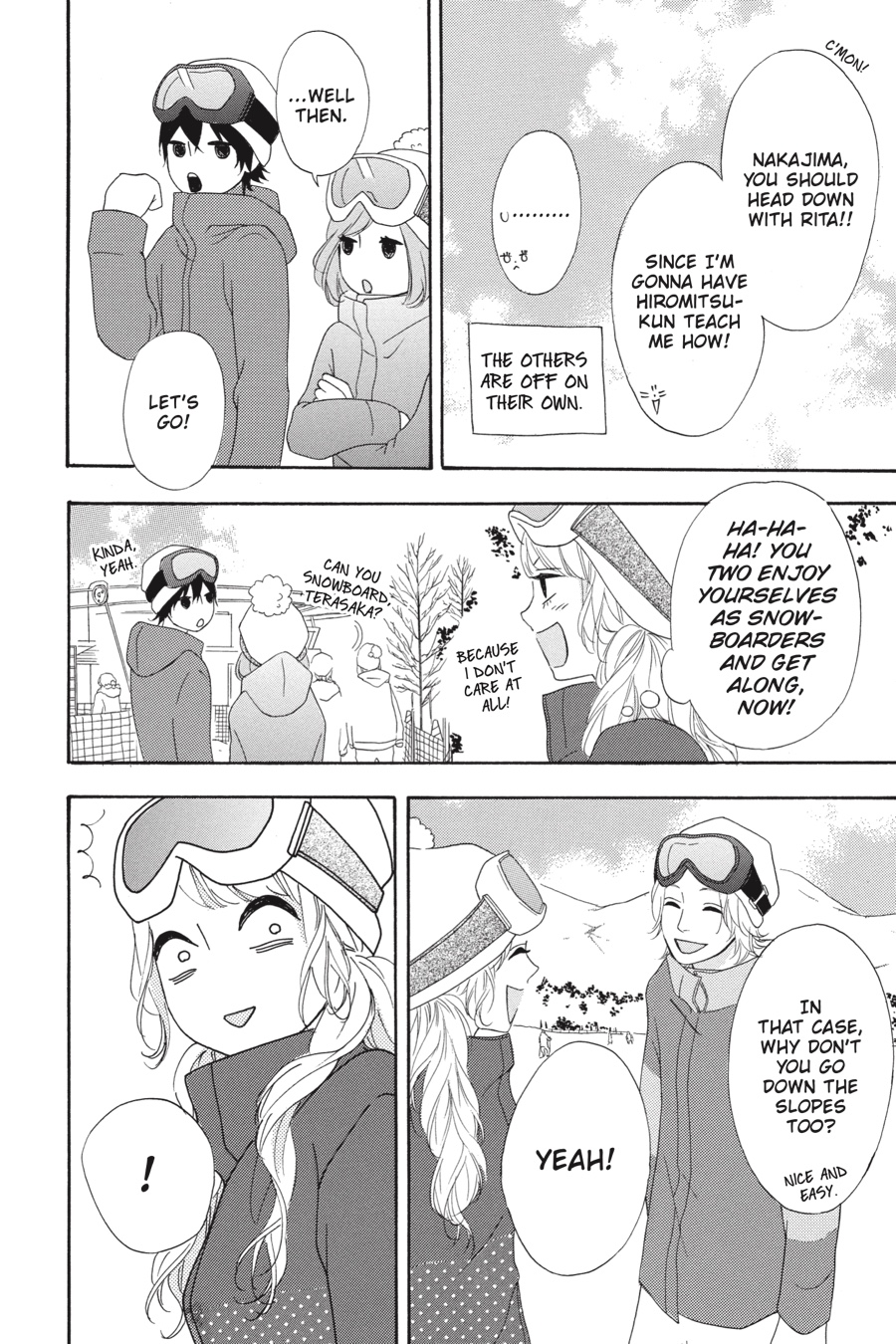 Hatori realizes what a mess she’s made of her Christmas with Hiromitsu, but now she’s determined to dedicate herself to him fully! With that, Hatori sets her sights on getting Nakajima and Rita together…since she’s definitely, totally, positively fine with them dating, and that way Rita’s out of the picture. Fortunately, Moe invites them all to go snowboarding over winter break, giving Hatori the perfect opportunity—and some quality time with Hiromitsu, no less. But when Hatori’s plans go awry and tensions rise, she’ll have to face her own complicated feelings first!