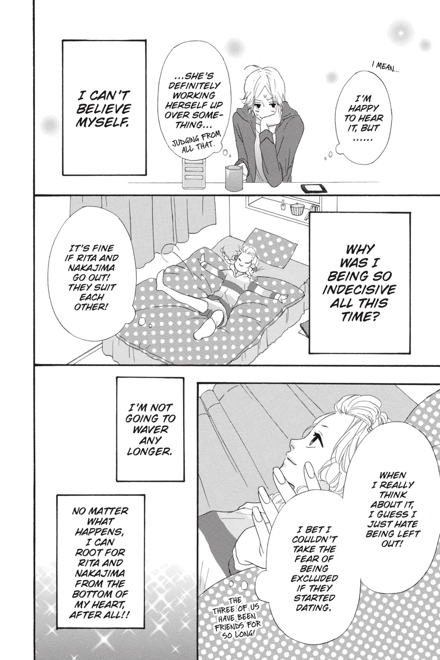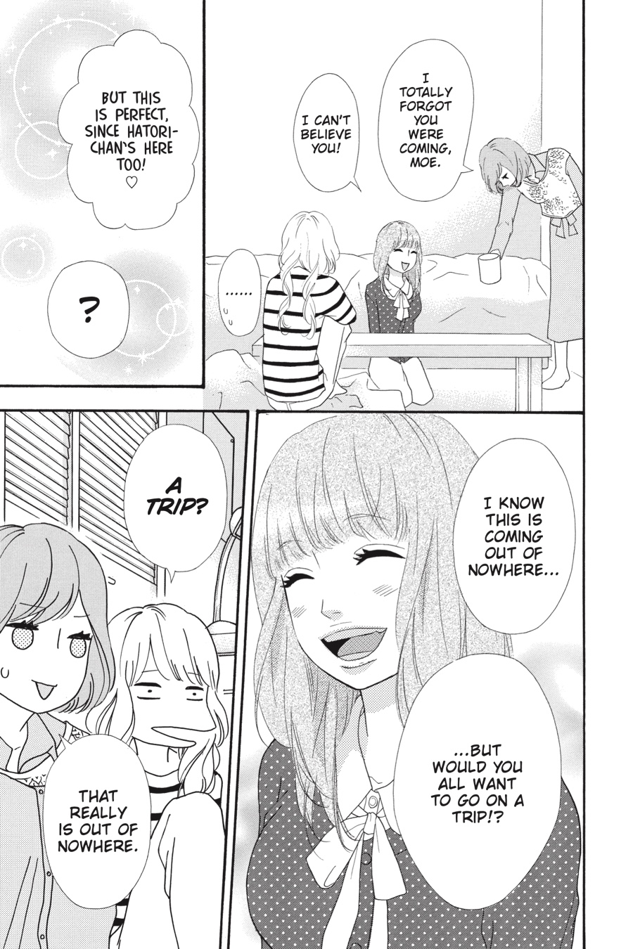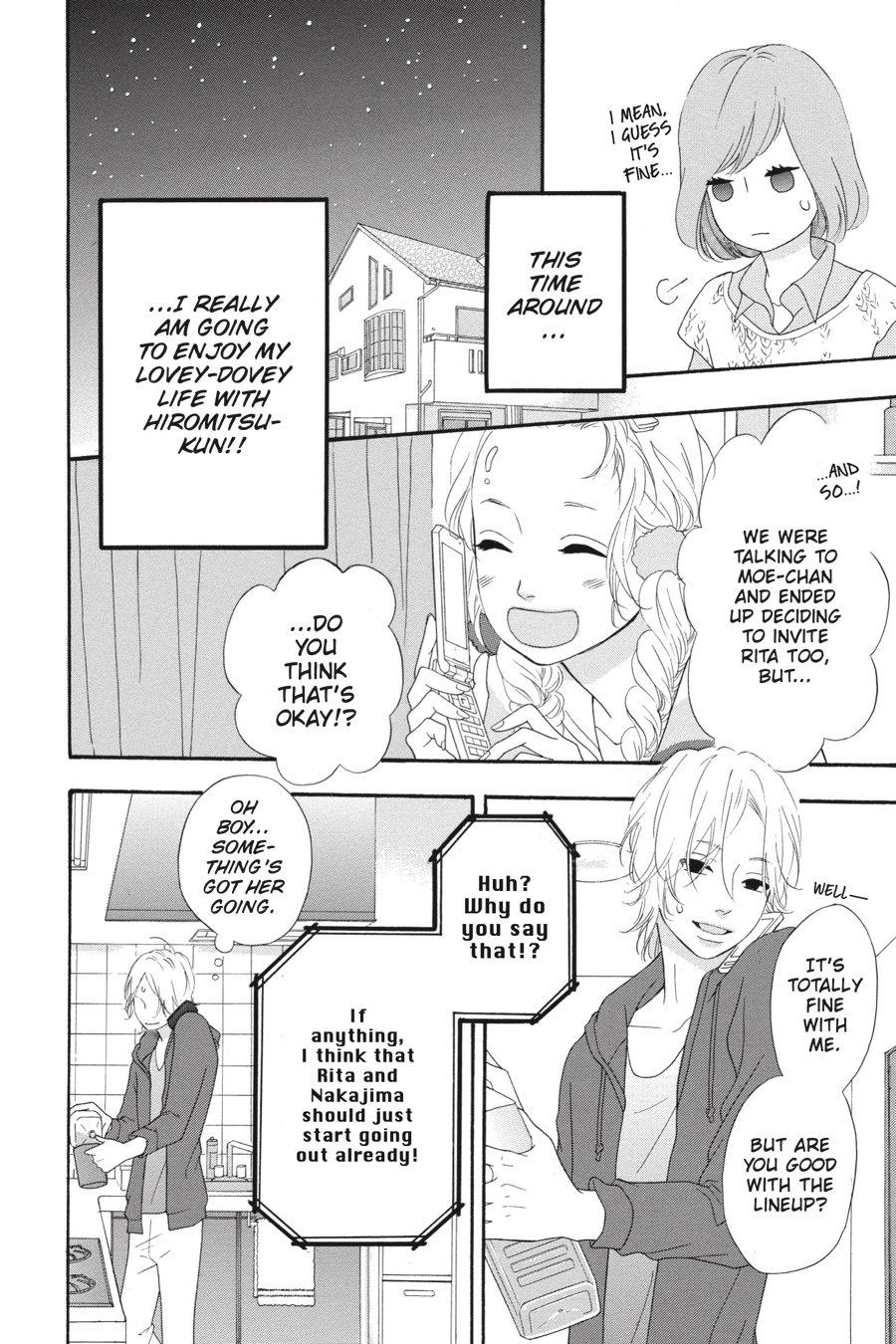 Hatori realizes what a mess she’s made of her Christmas with Hiromitsu, but now she’s determined to dedicate herself to him fully! With that, Hatori sets her sights on getting Nakajima and Rita together…since she’s definitely, totally, positively fine with them dating, and that way Rita’s out of the picture. Fortunately, Moe invites them all to go snowboarding over winter break, giving Hatori the perfect opportunity—and some quality time with Hiromitsu, no less. But when Hatori’s plans go awry and tensions rise, she’ll have to face her own complicated feelings first!