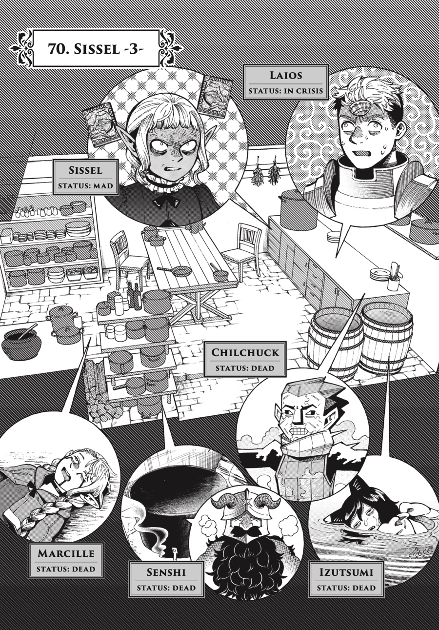 It’s eat or be eaten...literally! Locked in battle with the Lunatic Magician, Laios is the last man standing against an array of the dungeon’s deadliest dragons. Using his extensive monster knowledge to his advantage, Laios manages to defy the odds of almost certain death—at least until Sissel devises an even more terrible plan! Will Laios’s love of dungeon dining prove to be his downfall?