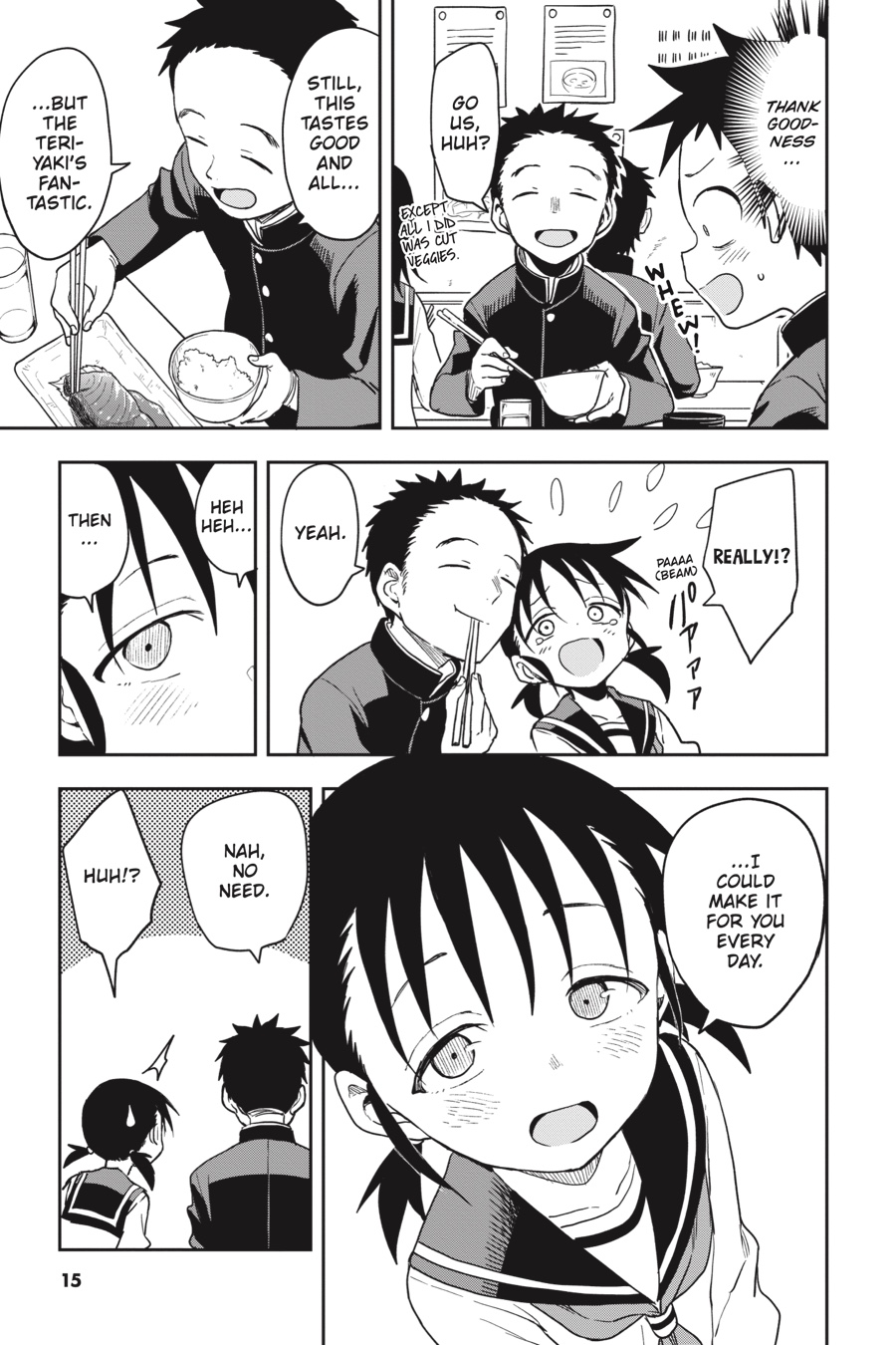 Nishikata’s efforts to finally beat Takagi-san in a competition have him running all over the school. Be it cooking class or art class, he’s always on the lookout for a potential scheme. So when Nishikata asks Takagisan to meet him behind the school building, there’s no way that can be misconstrued as a love confession…right!?
