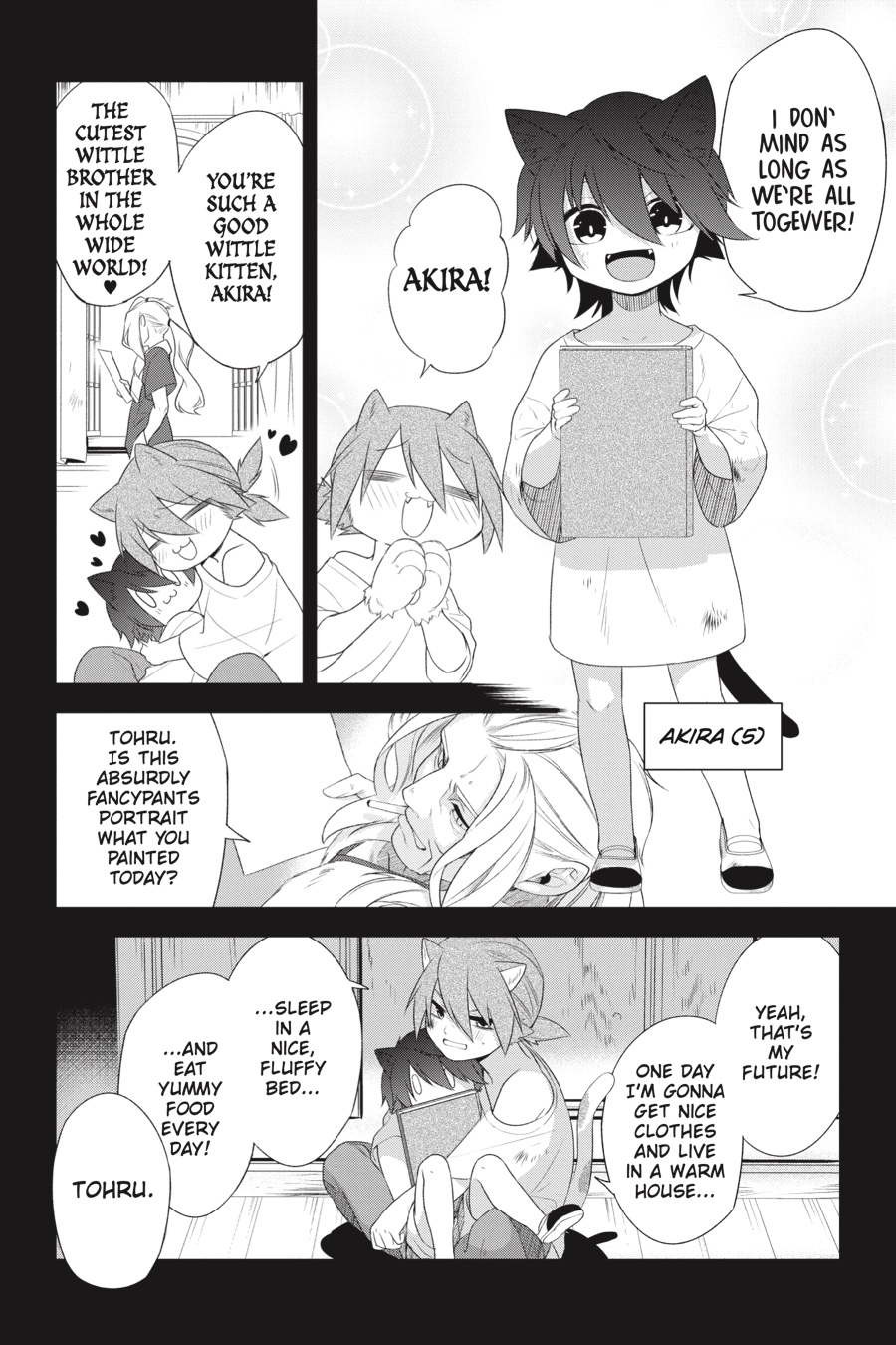 From helping Tohru with deadlines to hunting down runaways Akira and Susumu at a summer festival, Yukiharu has become an irreplaceable constant to the catlords—but what are they to him? Faced with the chance to return to a normal life, will he choose to stay as their ever-loyal manservant or...leave them forever?