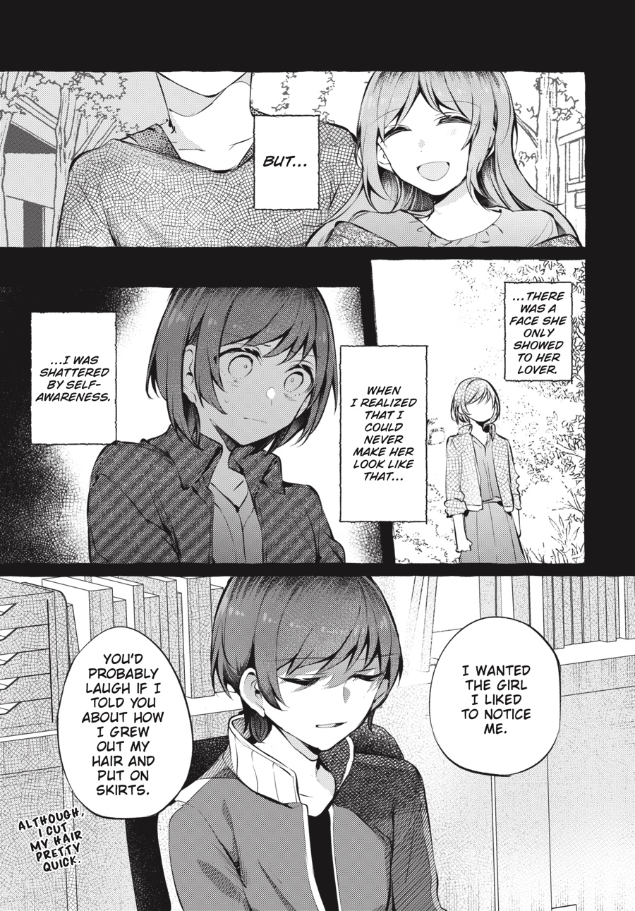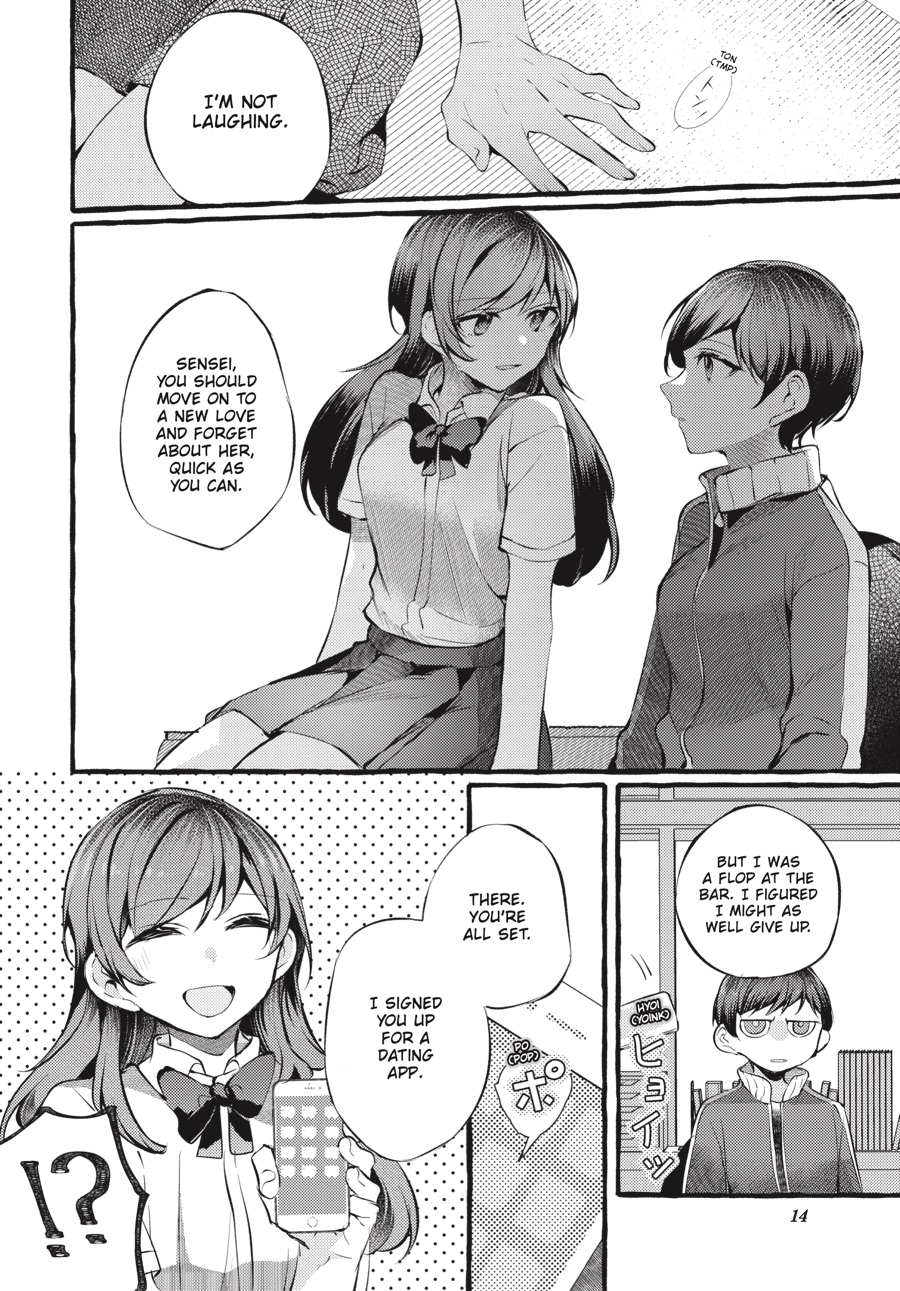 Kujou, a gym teacher whose past left her with a dim view of her prospects for love, finds herself pushed by her student Sugimoto into taking her girlfriend-search seriously. On Sugimoto’s advice, Kujou tries a lesbian bar, dating apps, anything…and falls flat every time. Was Kujou’s dejection truly just realism? Or is there some hope close by, where her fumbling efforts to find love stir a new emotion in another’s heart…?