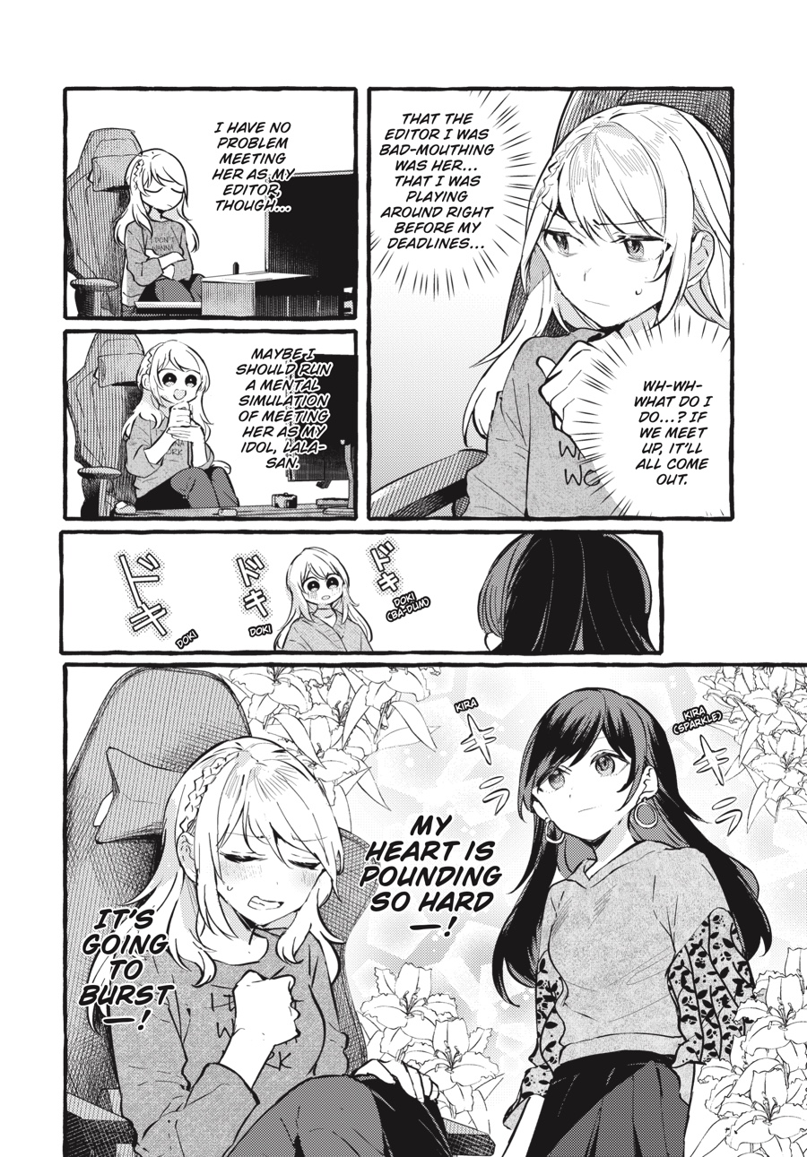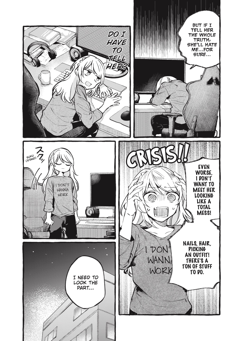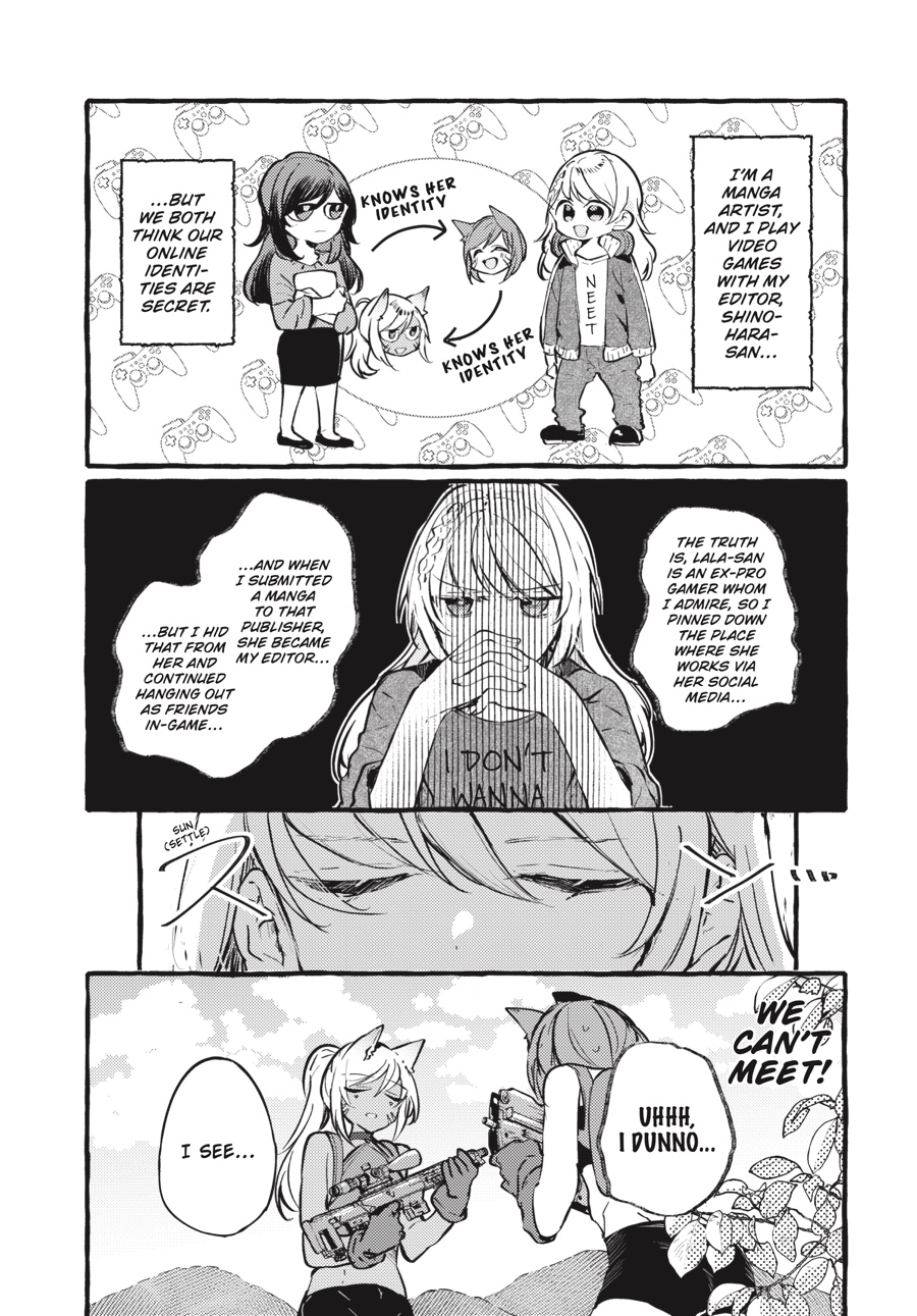 Since meeting in juvie, Minami and Shizuku have been at each other’sthroats on more than one occasion—but the years have bound themtogether. When Minami tosses and turns each night, trapped by hertrauma even as she dreams, Shizuku steps in… Then there’s Heke and Lala, coworkers who are distant in person but when behind the avatars, screen names, and UIs of video games, they’re thick as thieves. For their relationship to grow, someone will haveto muster the courage to propose their first face-to-face meetup. But without their roles as “editor” and “manga artist” acting as protective armor, will this fraught encounter end in tears instead of love?!