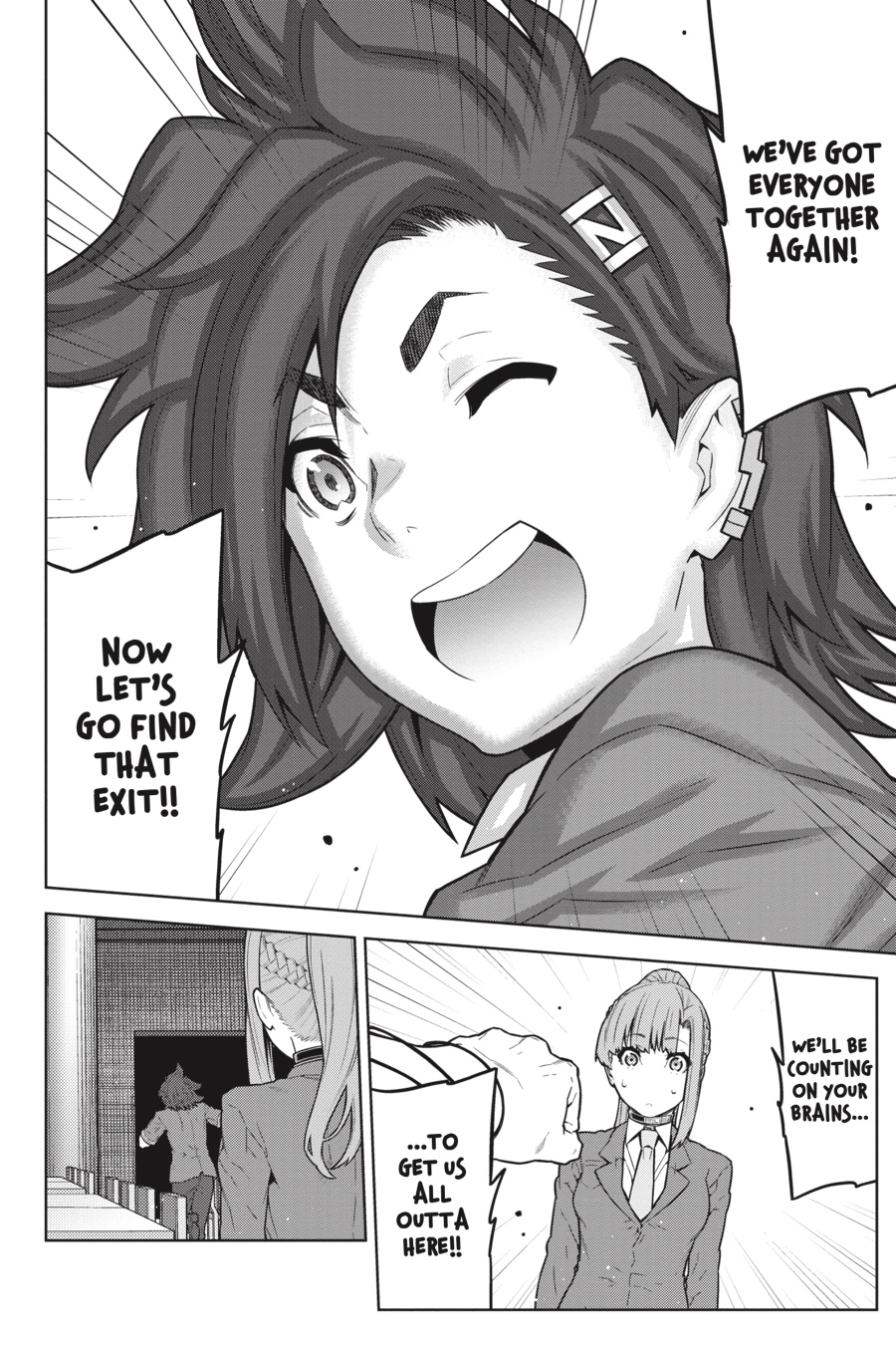 The brutal and sadistic Main Game has finally begun. The unwilling players have no choice but to vote for who will die by majority rule…but there’s a twist. Some players hold cards with secret, unique roles that modify the rules of the game, and Sara’s role is the “Keymaster”—if she’s voted out, all of them will die! But nearly everyone else is just as desperate not to be sacrificed, and ugly secrets will come to light as they try to convince one another there’s somebody more deserving...