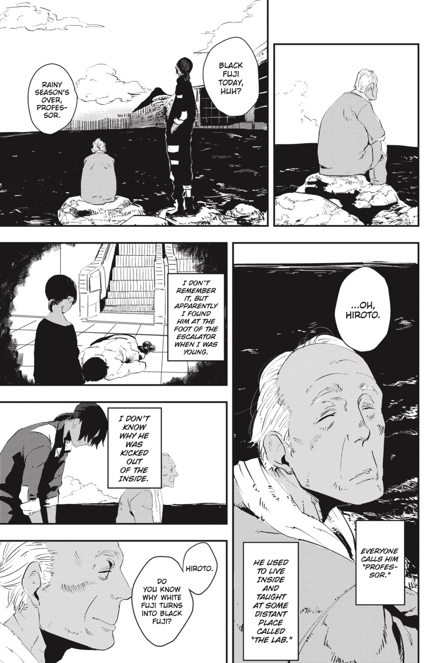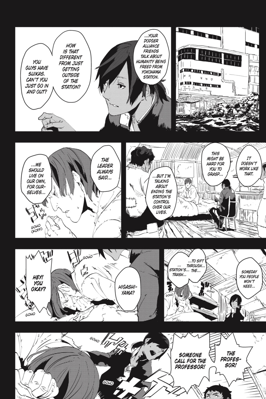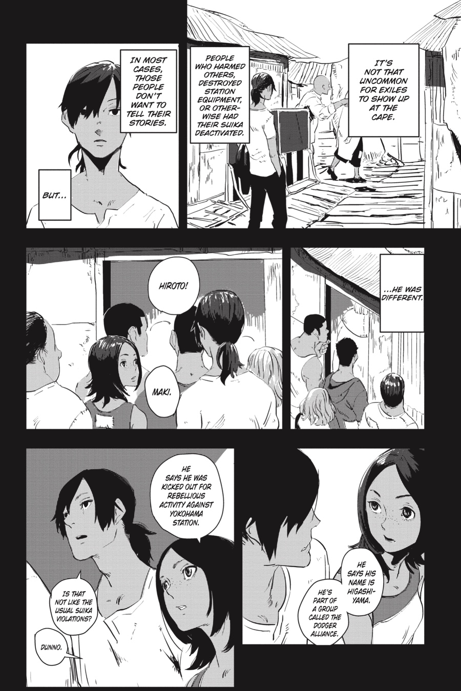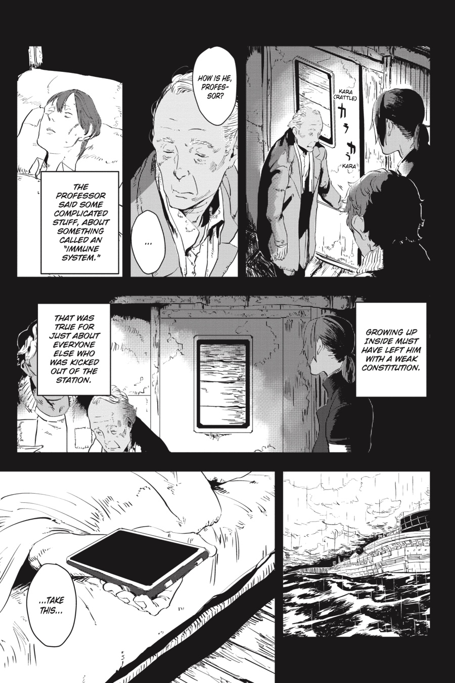 Two hundred years ago, Yokohama Station, which had been under constant construction, developed the ability to self-propagate. Now with nearly all Honshu, the mainisland of Japan, consumed by the growing station, the population has been split into two groups: those who live inside the sprawl with fare cards embedded in their brains and the few who persist on the remaining scraps of untouched land. Hiroto has lived his whole life on the outside, but when an exile from the station entrusts him with a mission and a ticket, he ventures into the ominous belly of the beast for the first time…