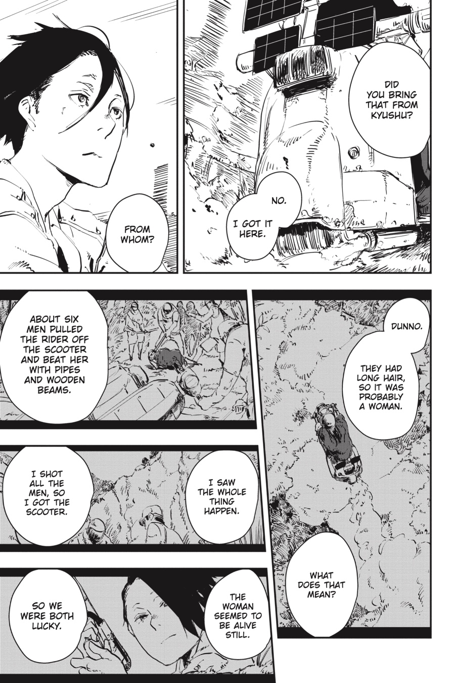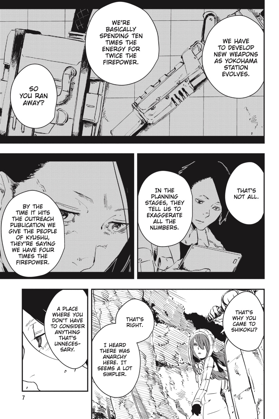 With help from Keiha Nijo of the Dodger Alliance, Hiroto has followed the Professor’s whispered int imat ions to Exit 42 in the mountainous interior of Yokohama Stat ion. There, in the heart of the beast, an ancient monitor flickers to life, and an image of the Professor in his youth, a haunting digital simulacrum, awakens from its slumber. And just nearby, there is a button—one that, when pressed, could end the Yokohama Station Hiroto has always relied on and has now come to know. Would activating it mean overthrowing a tyrant, or would it mean extinguishing the life-giving sun? In this final volume, turnstiles crawl the hallways, electric guns pierce the station’s hum, and secrets are revealed…