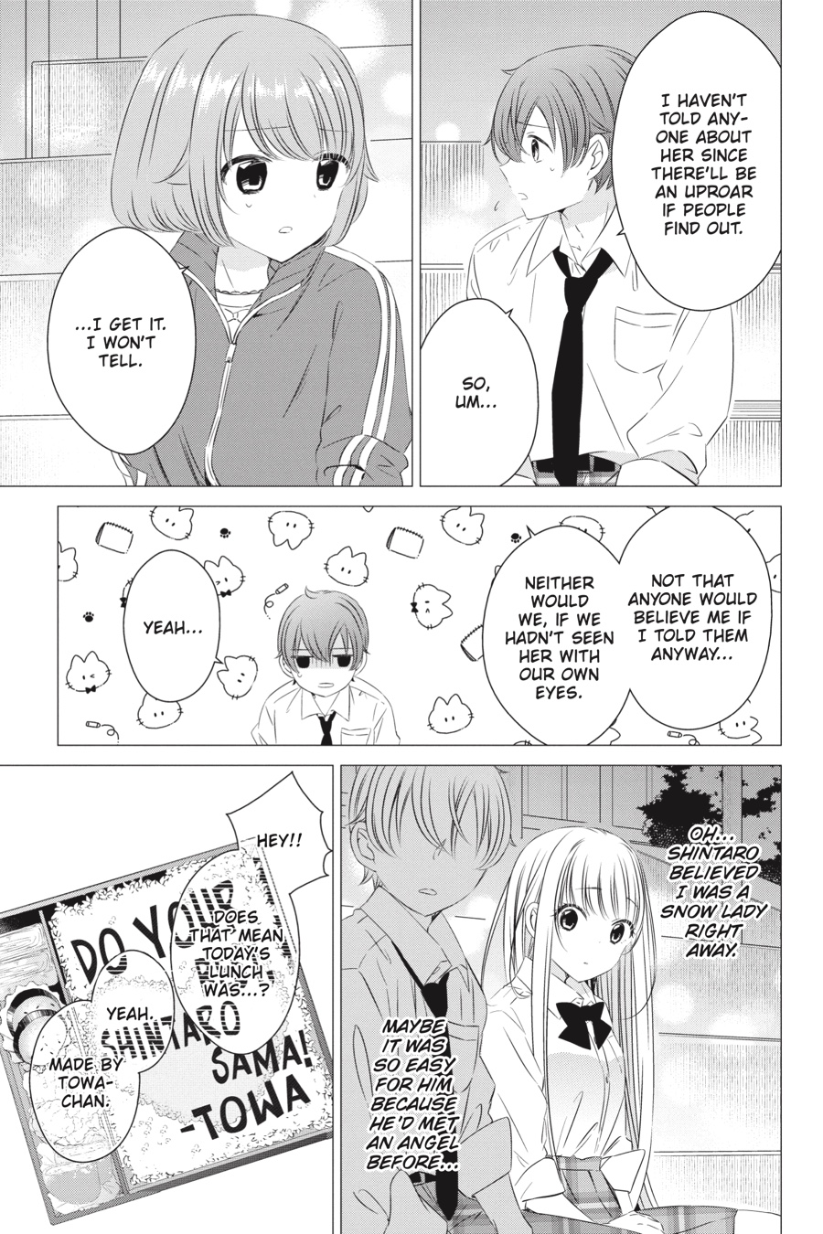 Shintaro never expected he’d get a roommate, or that this Towa girl would be a real-life angel. He’s been trying to keep her existence under wraps, but now his childhood friend Tsumugi has seen Towa in all her winged glory! And if a heavenly visitor wasn’t enough, Shintaro’s new coworker is a snow lady—a phantom whose moods can bring blizzards! What’s a guy to do…?
