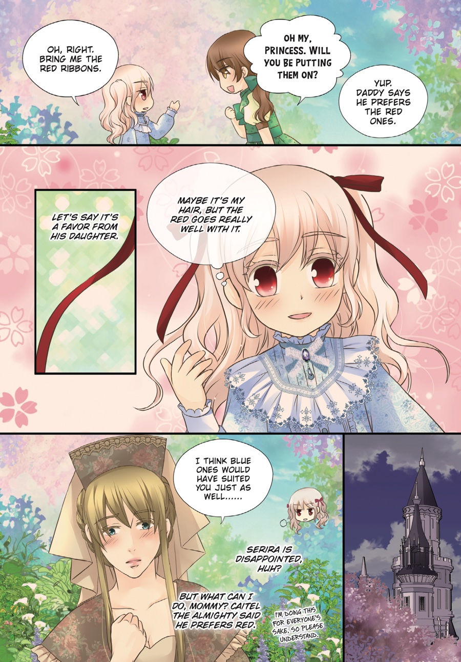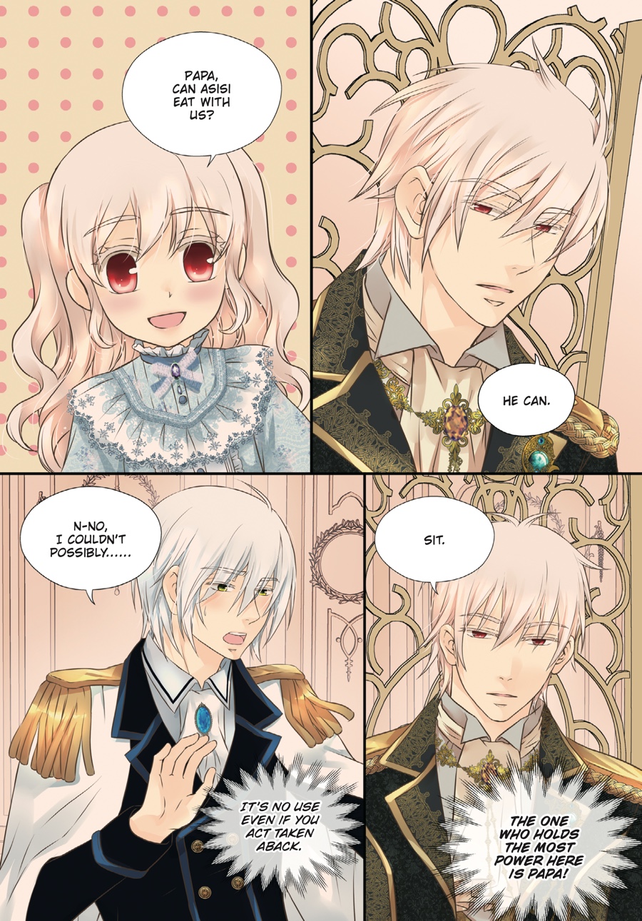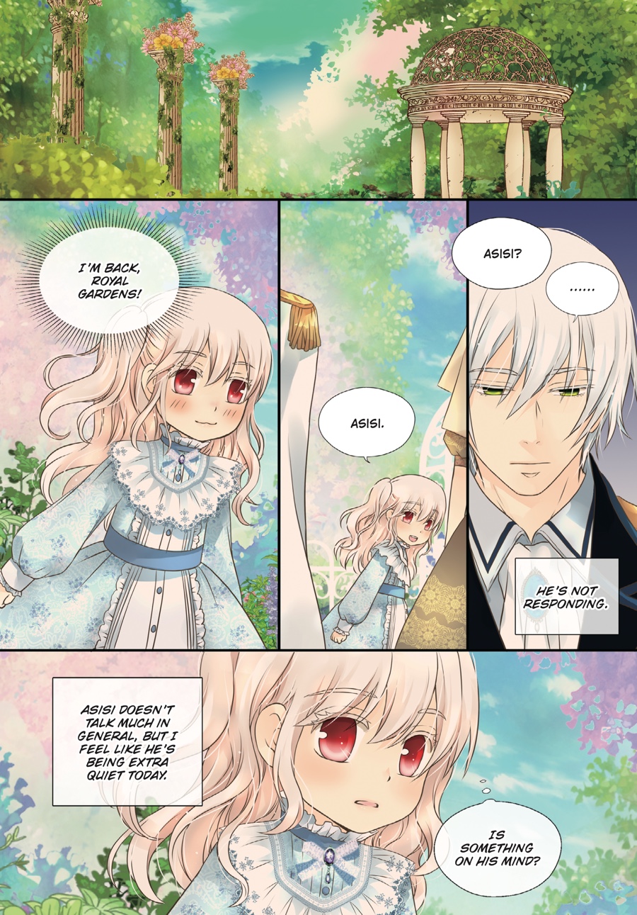 Surviving until eighteen is no ordinary feat when your dad is a tyrant, but Ria is no ordinary princess! Now an adult, she has taken on new responsibilities befitting the heir of an empire—entertaining guests, managing the palace, and as always, keeping that lunatic father of hers in check. Despite all the changes, the three grown men who hover over her in adoration remain the same…But Ria soon realizes there’s still so much she doesn’t know about them when she learns of Asisi’s hidden past…!