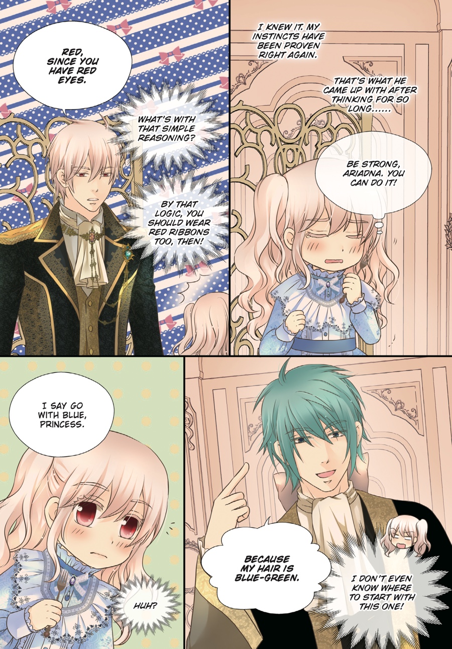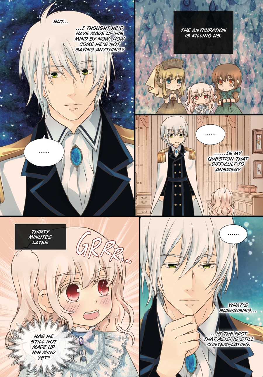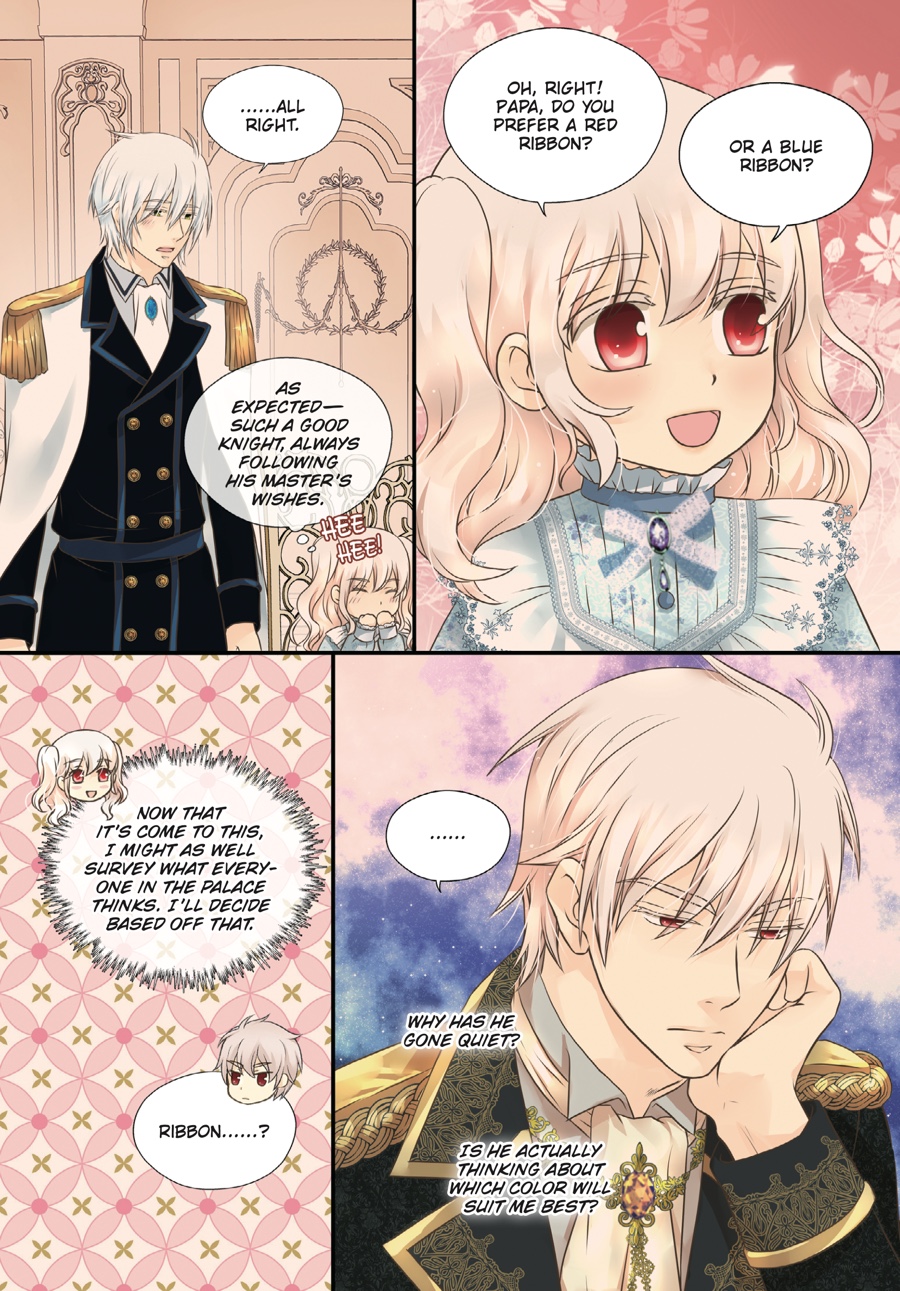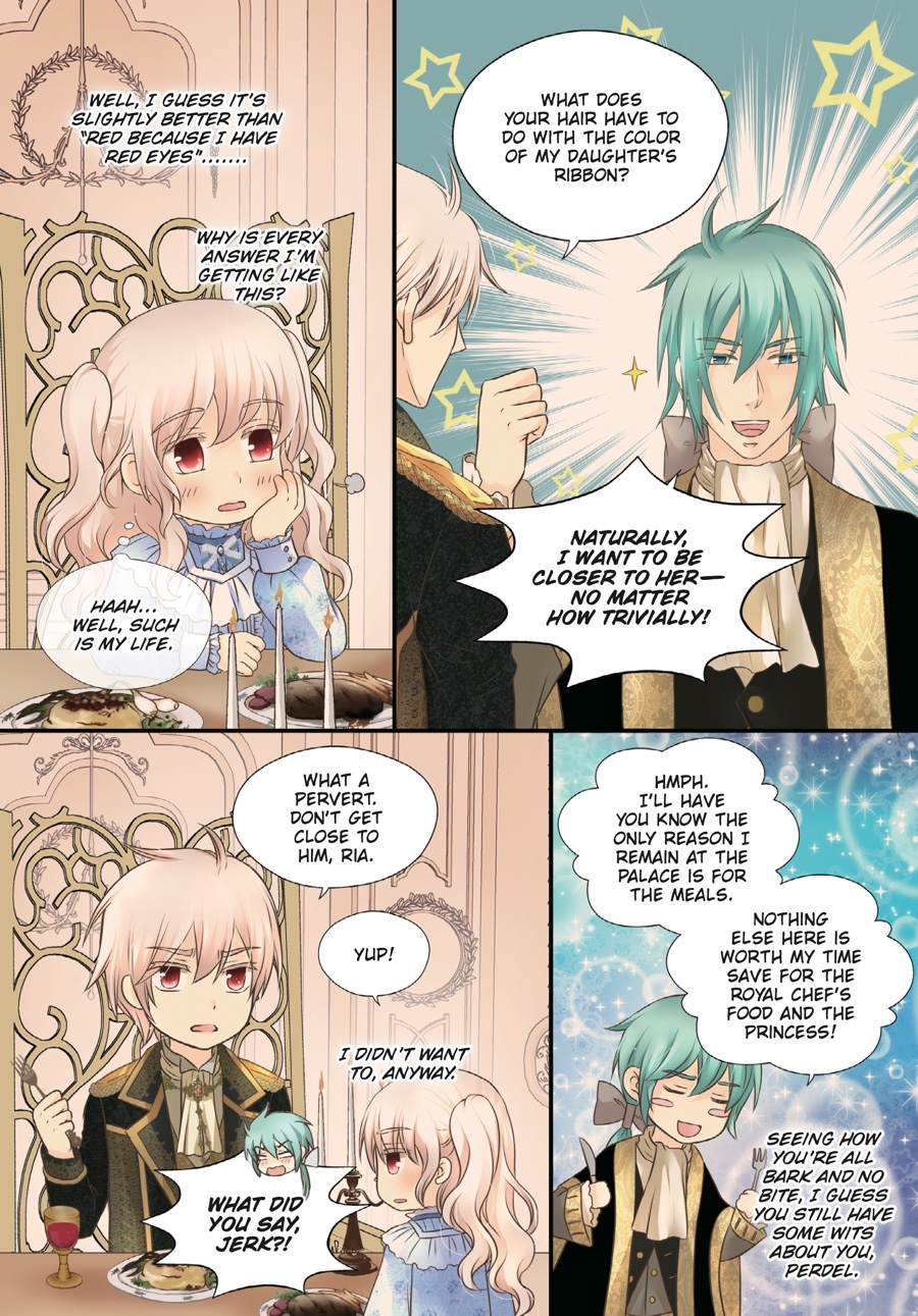 Surviving until eighteen is no ordinary feat when your dad is a tyrant, but Ria is no ordinary princess! Now an adult, she has taken on new responsibilities befitting the heir of an empire—entertaining guests, managing the palace, and as always, keeping that lunatic father of hers in check. Despite all the changes, the three grown men who hover over her in adoration remain the same…But Ria soon realizes there’s still so much she doesn’t know about them when she learns of Asisi’s hidden past…!