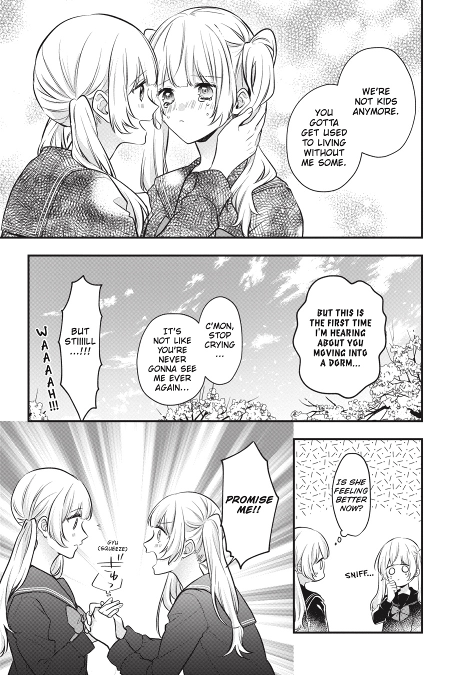 Himari Akeno can’t wait to start high school! Even though she’s parting ways with her twin sister, Mio, Himari’s enthusiasm to start this new chapter of her life is palpable—that is, until a traumatic incident sends her home to hide in her room…Watching Himari’s dreams shatter is more than Mio can bear, especially when her sister still longs for an ordinary student life. Determined to see her twin get back out into the world, Mio “catches a cold” and convinces her sister to fill in until she “recovers.” As long as the shy, introverted Himari can pull off impersonating the bubbly, energetic Mio, nothing could go wrong…right?