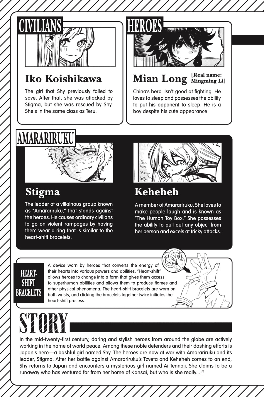 After her battle with Tzveta and Keheheh of the evil syndicate Amarariruku, Shy returns to Japan, where she encounters the enigmatic Ai Tennoji—a runaway from the Kansai region. Their time together is cut short when the Amarariruku launch a massive attack on Tokyo, throwing the heroes into a state of emergency. As the hero of Japan, can Shy stand up to the pressure of defending her home turf...?