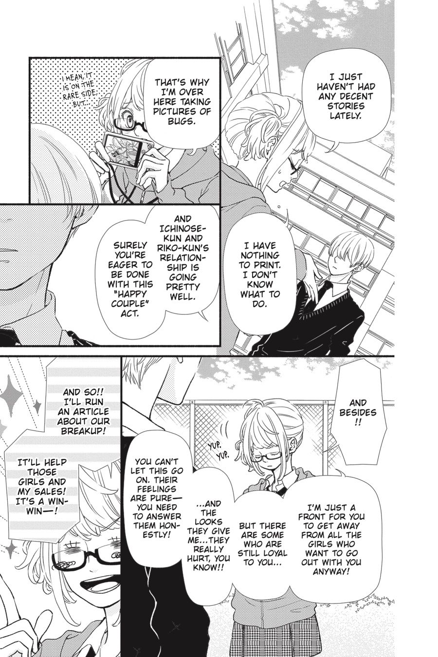Taka always thought he’d be the last person thrown off by high school romances. But when his seemingly perfect partner in crime, Shimura, has a sudden request—“Let’s break up!”—he totally loses his balance. Even though this all started as an elaborate scheme to help Kai, now Taka is the one needing Kai’s relationship advice! The tides sure have turned!
