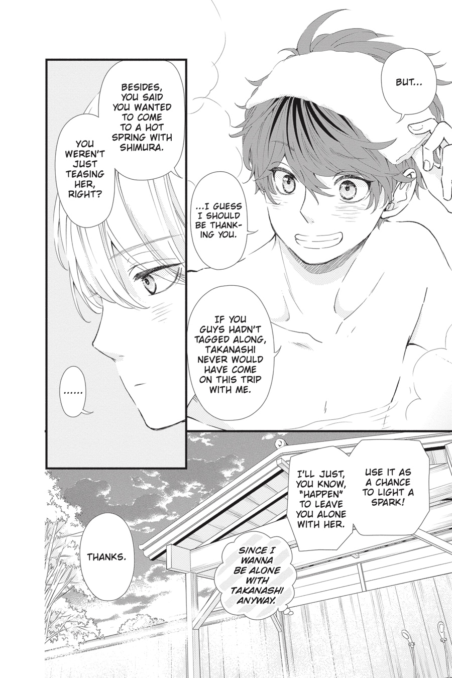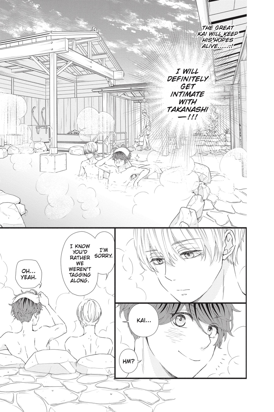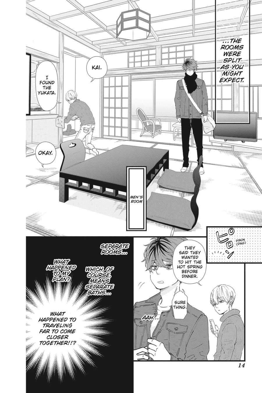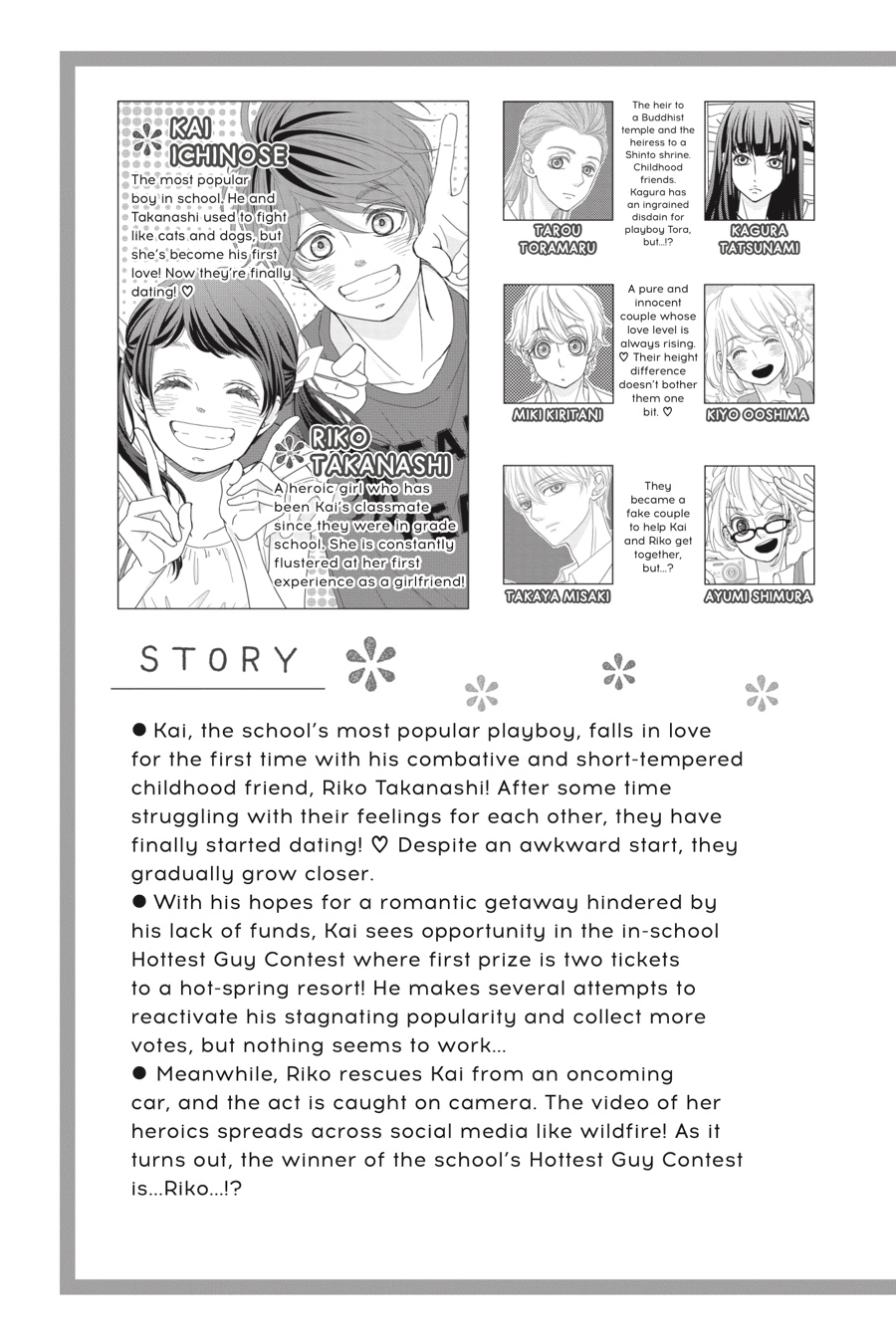 Thanks to Riko’s heroic instinct, she took first prize in the Hottest Guy Contest and won a trip to a hot-spring resort. Kai has been eagerly awaiting their romantic getaway, but unfortunately for him, the dream trip for two has suddenly become a group affair. With Shimura and Misaki tagging along, alone time has dwindled to a thing of mere imagination. Odds take a turn in the boys’ favor, though, when Shimura insists on sleeping in Misaki’s room…The hope for intimacy may not be lost, after all!