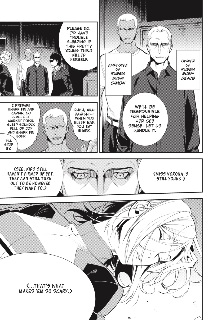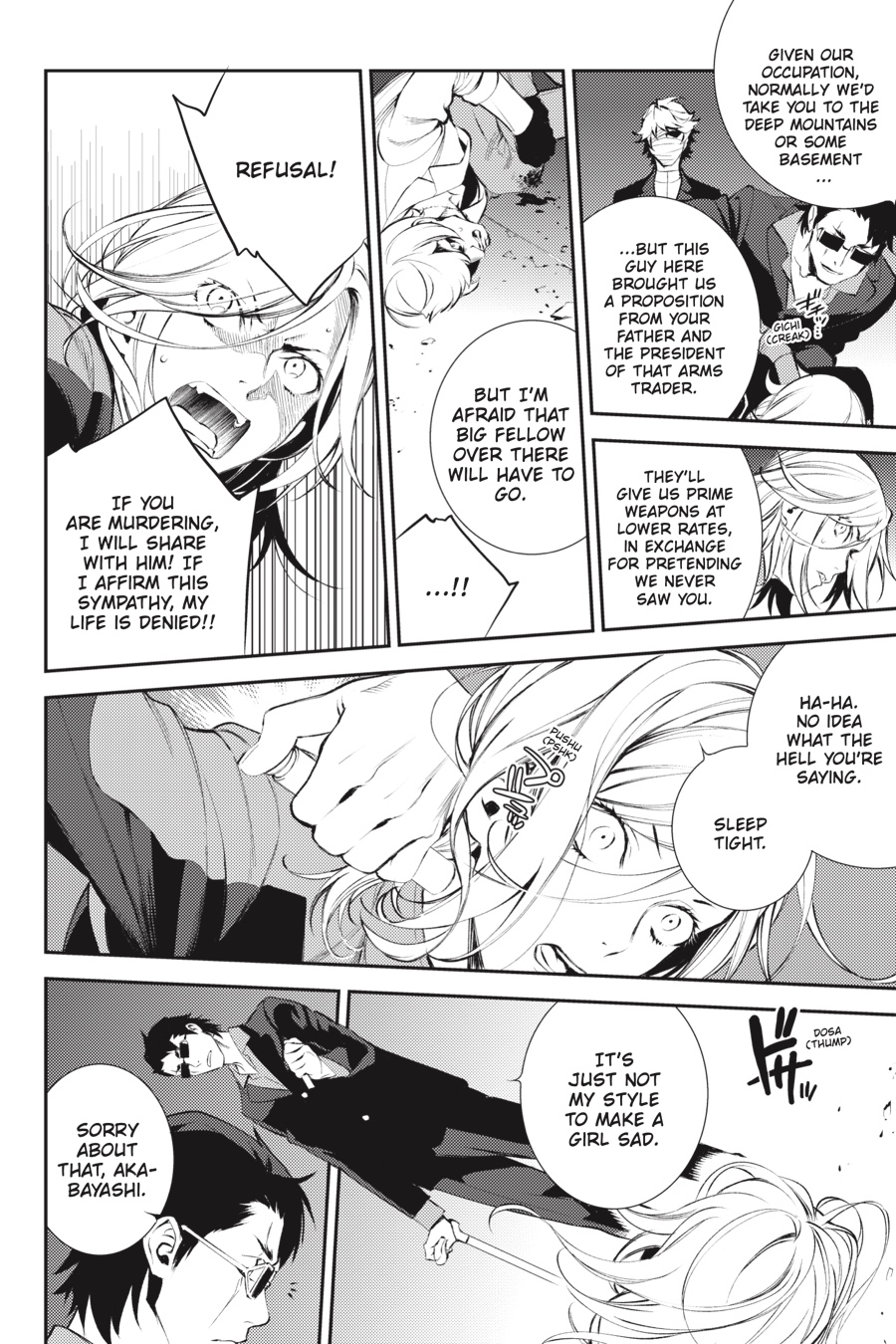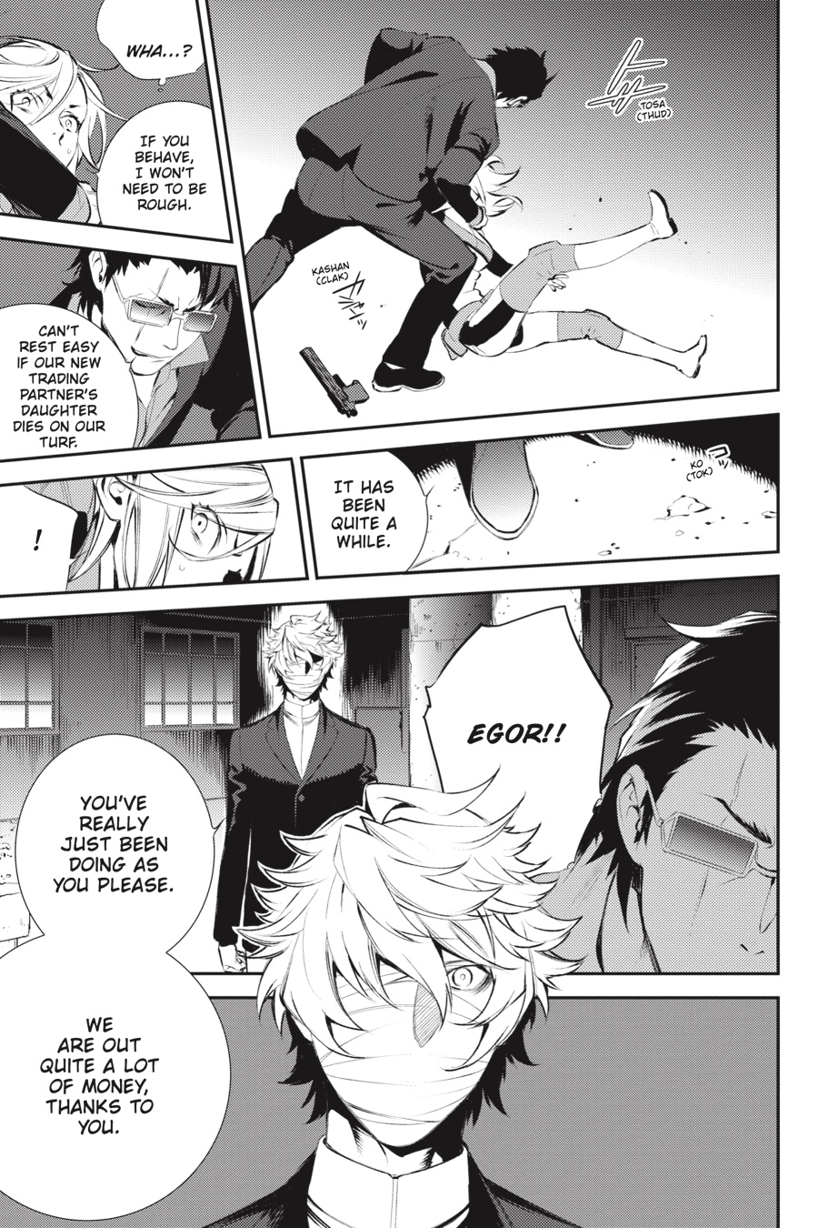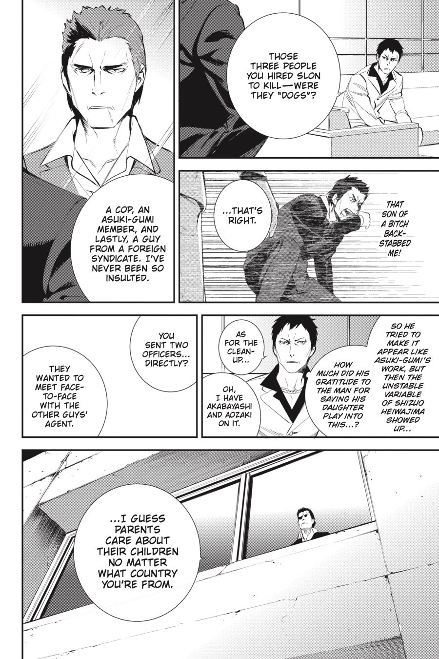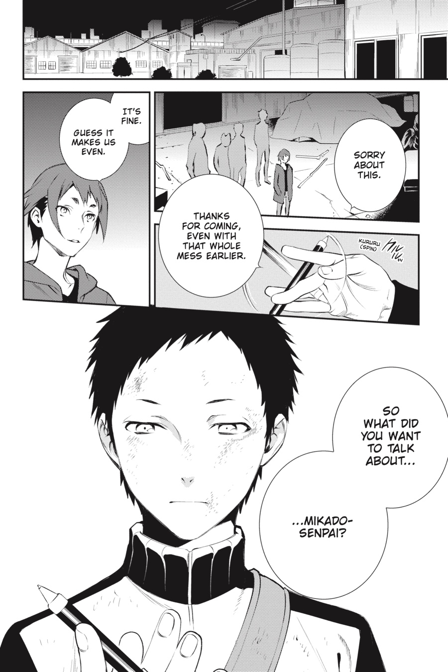 In his younger days, yakuza officer Akabayashi met Sayaka, the mother of Anri Sonohara, who held Saika within her...and this chance encounter changed his life forever. Meanwhile, Mikado begins a purge of the violent members of Dollars, an assassin menaces Izaya, and somehow Shizuo's getting all the ladies...?! There's never time to sit back and relax in Ikebukuro!