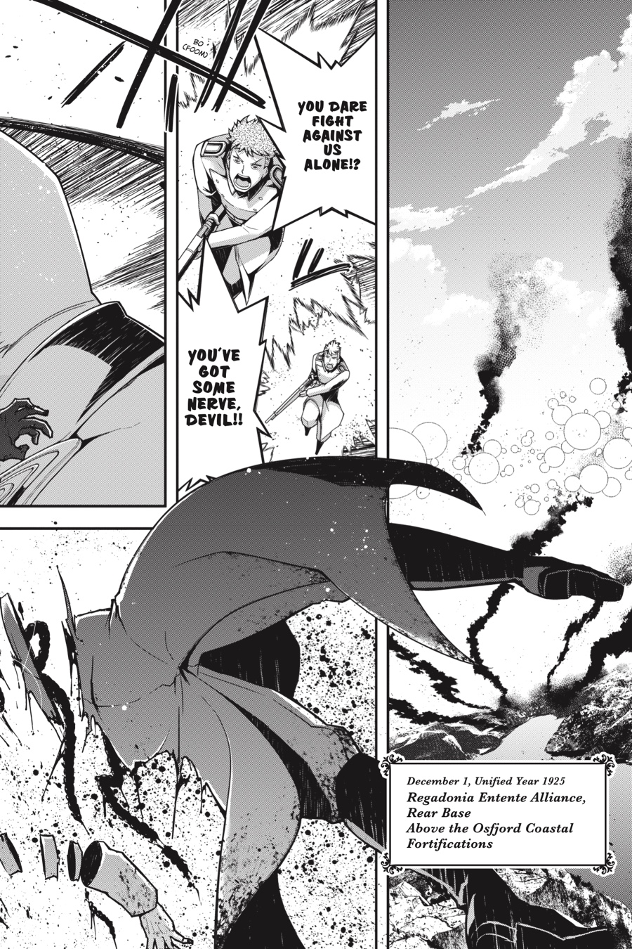 Finally, the Osfjord clash between Major Tanya von Degurechaff and Colonel Anson Sue of the Regadonia Entente Alliance reaches its climax! Who will emerge victorious in this fierce showdown between two world powers?! With the fate of the entire aerial mage battalion and the Imperial fleet resting on her tiny shoulders, failure is not an option for this vertically-challenged major—certainly not when her reputation’s on the line!!