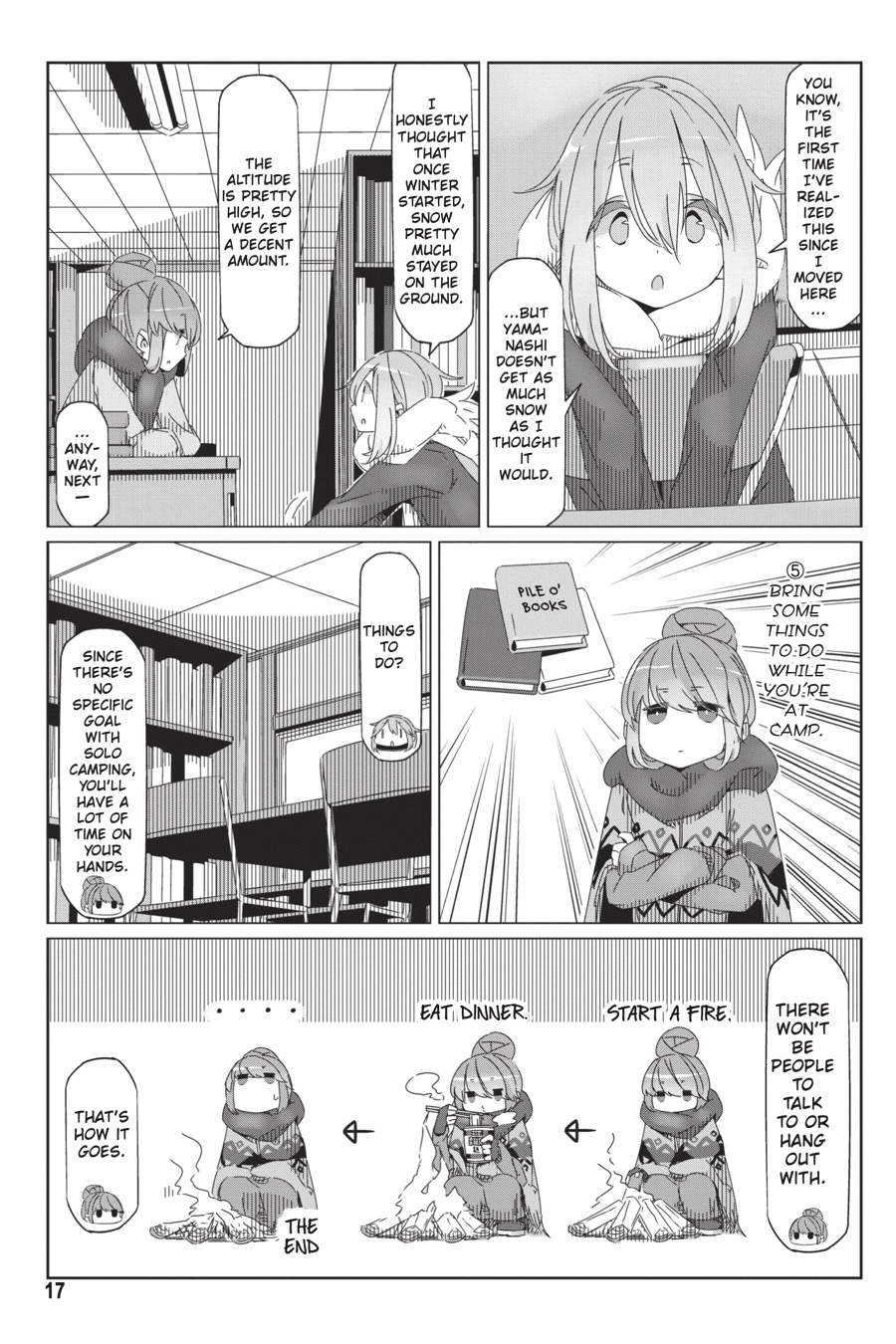 Ever since Rin began talking about the unique joys of solo camping, it’s been on Nadeshiko’s mind—and now she’s intent on trying it herself! But while Nadeshiko has her heart set on going it alone, both Rin and Nadeshiko’s big sister, Sakura, can’t help but worry. Can such an easygoing girl handle the outdoors all by herself?