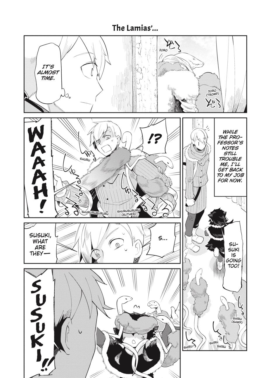 Treacherous roads force Hakaba and his party to wait out the winter in the mountain village. The extra time affords Hakaba the opportunity to puzzle out the lamias’ rhythmic tap language as well as decipher the meaning of the professor’s recently uncovered papers. Though only a few scraps could be recovered, the professor’s sense of foreboding and urgency are apparent. If humans cannot understand the Netherworld, the threat against his loved ones may become dire, instilling a fear that hits Hakaba closer to home more than ever before...