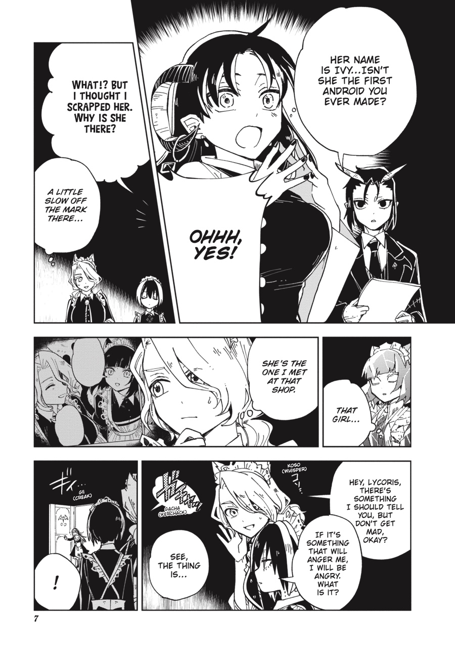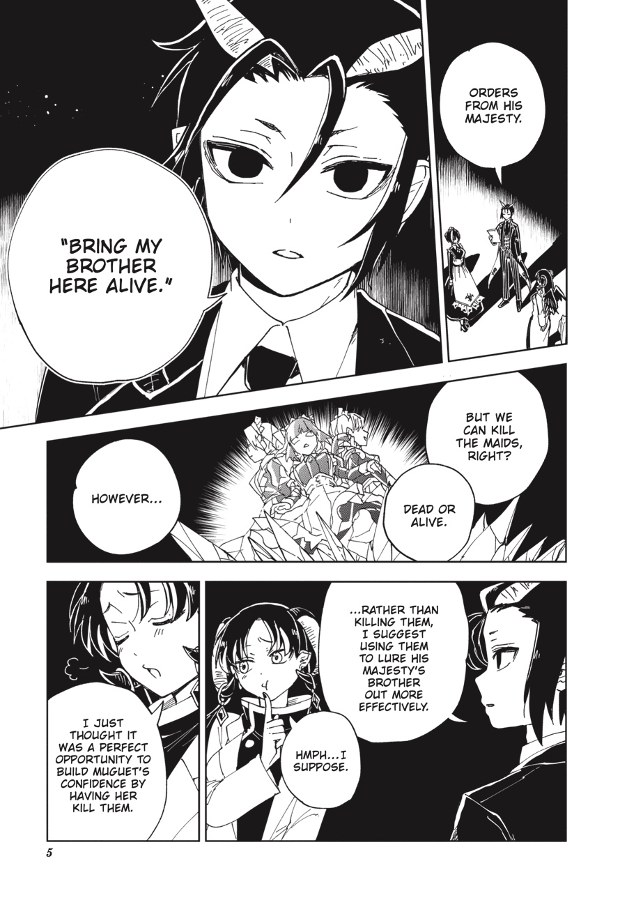 Unbeknownst to the employees of Cirsium Domestic Staffing Agency, the demon king’s maid corps have finally uncovered their identities and swiftly set a trap for them—one that Ivy and Sumire run straight into! With Ivy kidnapped and the clock ticking, the time has come for Rose to tell Sumire the tale of three peculiar misfits and the world that conspired against them.