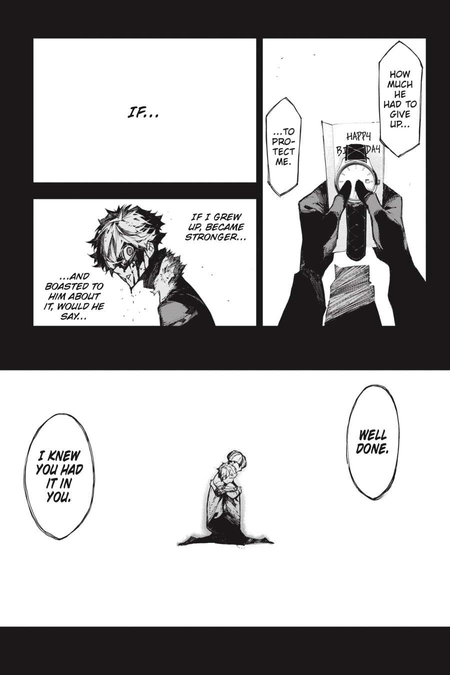 Akutagawa and Atsushi clash in an explosive final confrontation—one side desperate to save his last remaining family member, the other seeking to keep his promise with the late orphanage director. And at the battle’s end, the pair will discover the truth behind their world as the thrilling alternate tale of Bungo Stray Dogs comes to a grand conclusion!