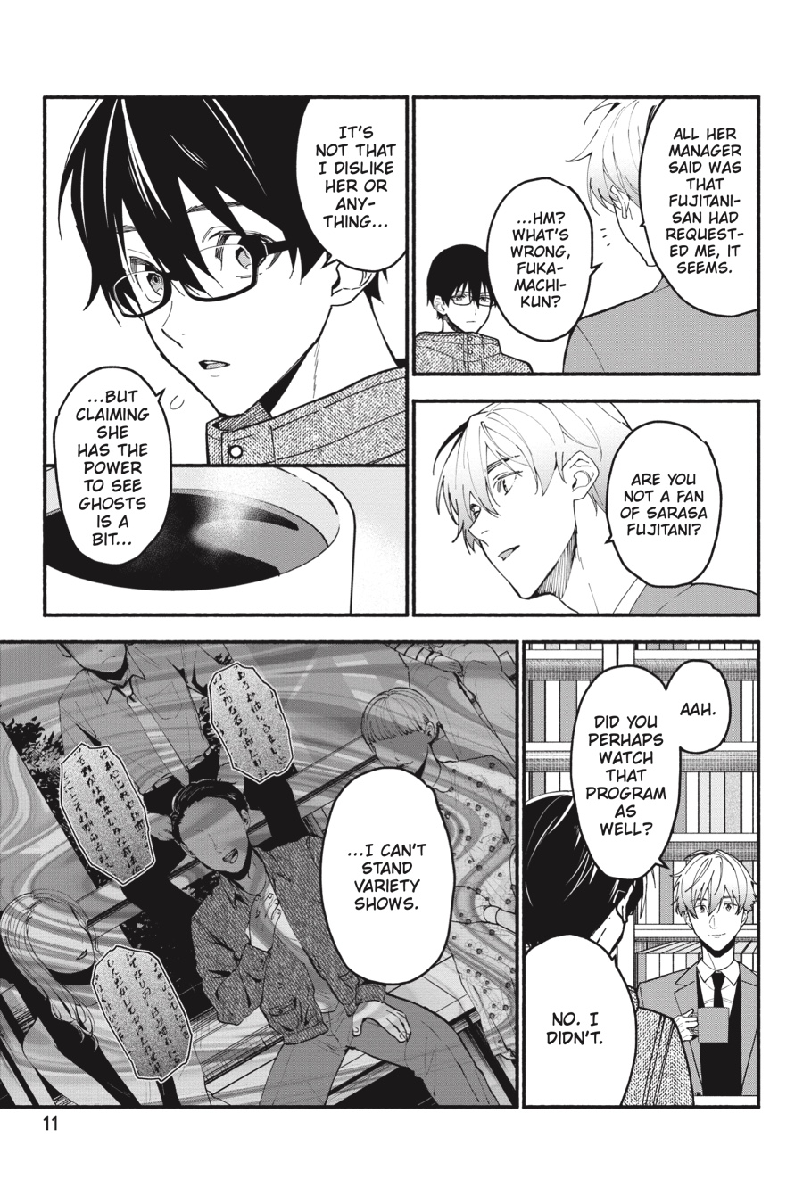 Fukamachi loses his mysterious ability to distinguish untruths after catching a cold! While he’s out of commission, Professor Takatsuki makes an appearance on a panel next to an actress who claims to have seen ghosts! How will Takatsuki fare in an investigation of her haunted studio with his lie detector on the fritz...?