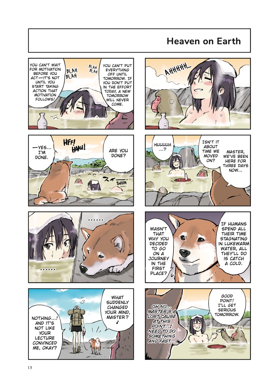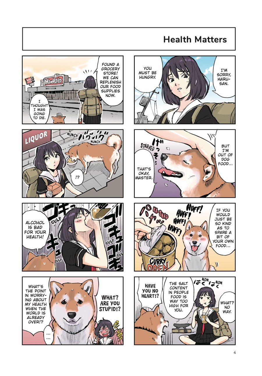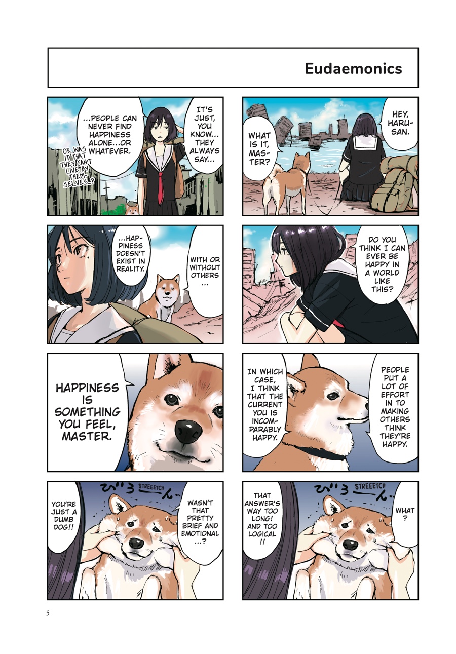 A single teenage girl journeys through the crumbling ruins of civilization—the last human on Earth, exploring the concrete jungle that has outlived mankind. Keeping her company is woman’s best friend—the ever-adorable and quick-witted Shiba Inu Haru, who is ready to stick with her through thick and thin! With such a pleasant conversation partner to keep the postapocalyptic doldrums at bay, the end of the world might not be so bad after all!