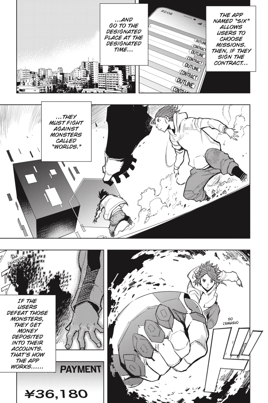 Broke brothers Kanade and Kaname Nakata might have found their way out of poverty: a mysterious app called “Six” that offers bounties to whoever can slay monsters known as “Worlds.” But juggling school, rent, and building-sized spiders isn’t as rewarding as all those zeroes might make it look! As they meet more of the app’s users, they come ever closer to understanding the secrets of “Six”…But will they fall into inescapable debt from fumbling their missions first?