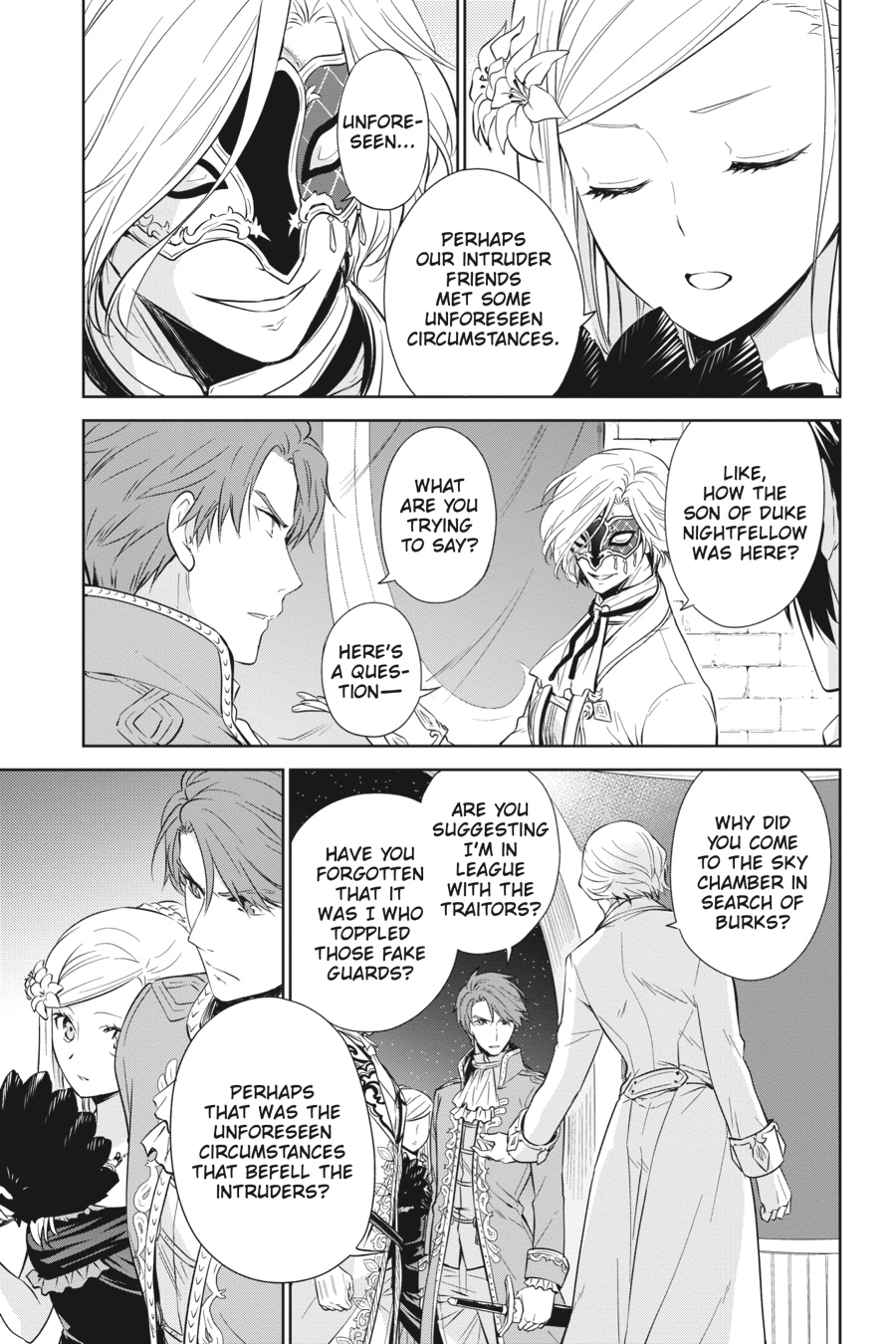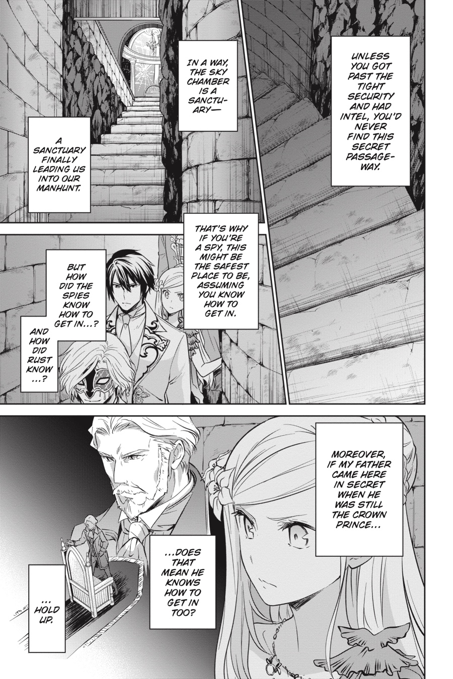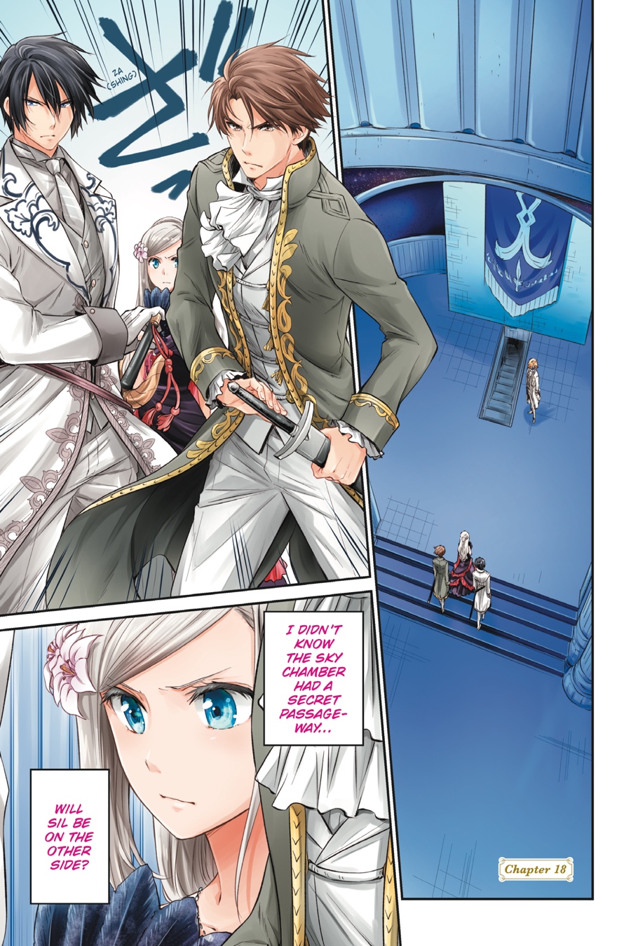 Despite Rust Byrne’s warnings that their opponent is one of the powerful Adjutants of legend, Princess Octavia; her bodyguard, Klifford; and the young lord Derek follow the secretive noble through the passageways below the Sky Chamber, hot on the trails of the intruders who kidnapped Sil. Even during their rush, however, Octavia notices how clean the tunnels are, which begs the question—who could be using them and to what end? Meanwhile, Prince Alexis continues to be plagued by strange visions of King Eus, though they may be more than mere dreams…
