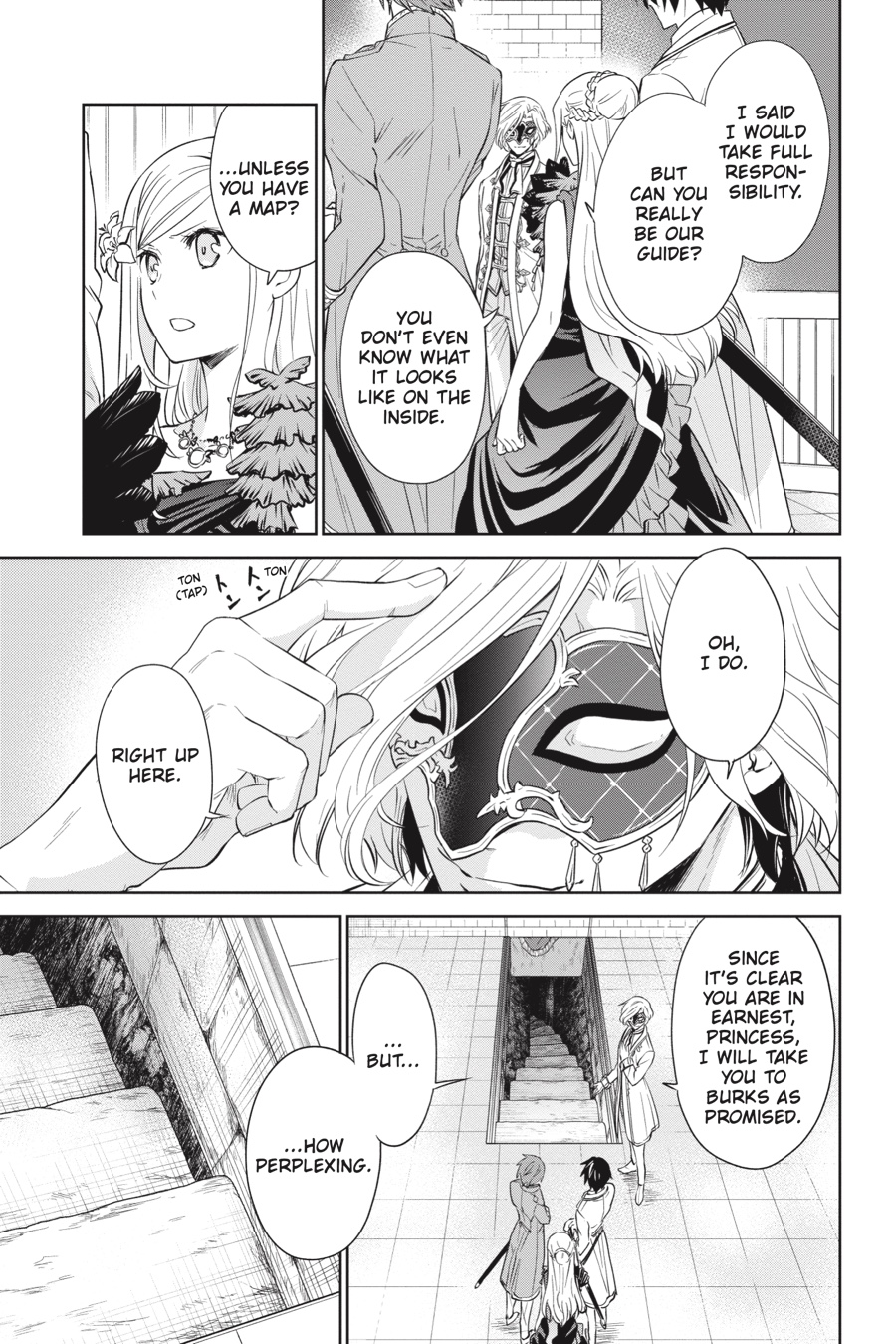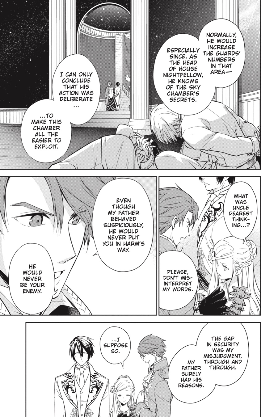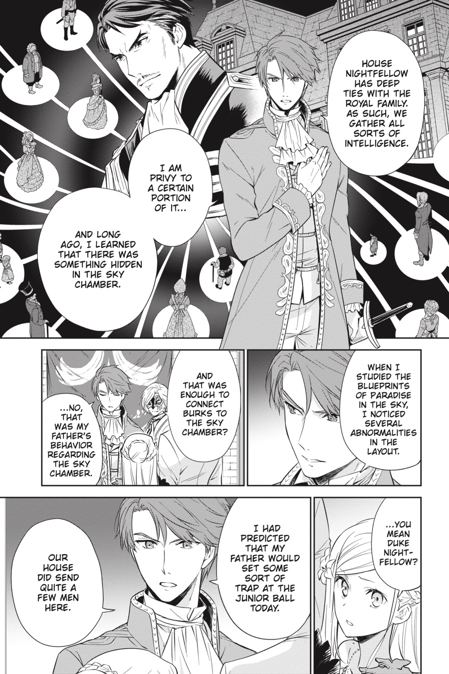 Despite Rust Byrne’s warnings that their opponent is one of the powerful Adjutants of legend, Princess Octavia; her bodyguard, Klifford; and the young lord Derek follow the secretive noble through the passageways below the Sky Chamber, hot on the trails of the intruders who kidnapped Sil. Even during their rush, however, Octavia notices how clean the tunnels are, which begs the question—who could be using them and to what end? Meanwhile, Prince Alexis continues to be plagued by strange visions of King Eus, though they may be more than mere dreams…