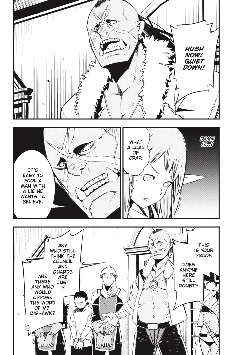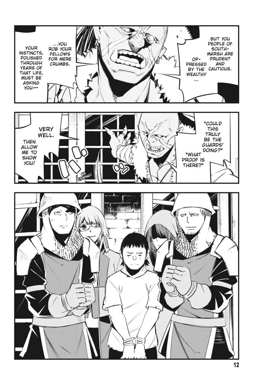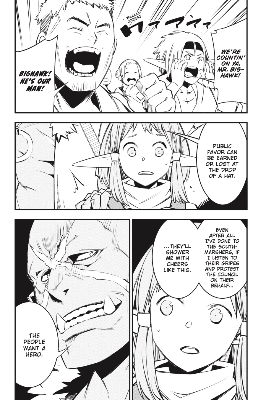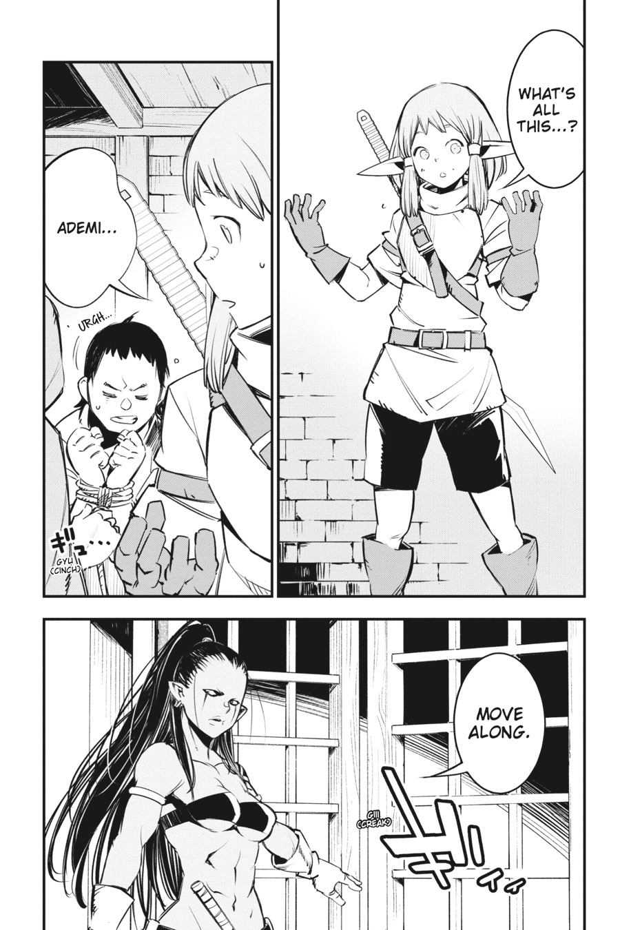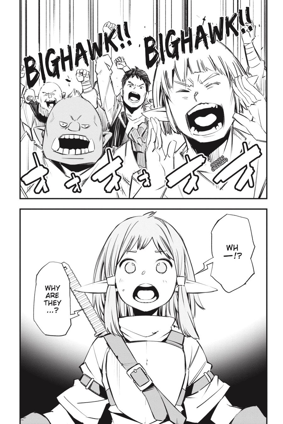 “bring the blade of judgment down upon the villain who attacked your family!” Rit and Red’s scheme to lure out the Thieves Guild goes awry when Al, the half-elf boy in their care, is kidnapped by Bighawk’s henchmen! Their ringleader seems to have grand plans for Al, claiming he’ll make the boy a “hero.” But things quickly turn sour when he brings out the object of Al’s vengeance and local bully Ademi and orders the half-elf to murder him—in front of a huge crowd of townspeople! Will Al do as Bighawk says and exact revenge on his parents’ attacker?!