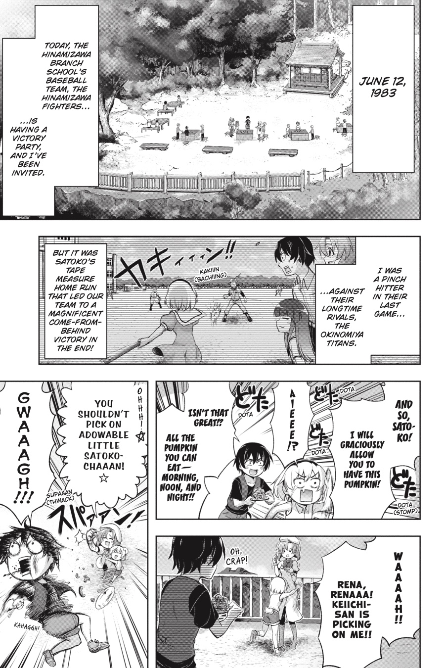 Keiichi Maebara has made lots of great friends since moving to Hinamizawa— namely one Satoko Hojo, who’s practically a little sister to him now. When he finds out about her lessthan- stellar home life, he’s determined to help Satoko find her happily ever after! But with the Cotton Drifting Festival in less than a week, Keiichi wonders whether the Satoko he knows will even last until then, or if she will simply drift away like the cotton in the stream…