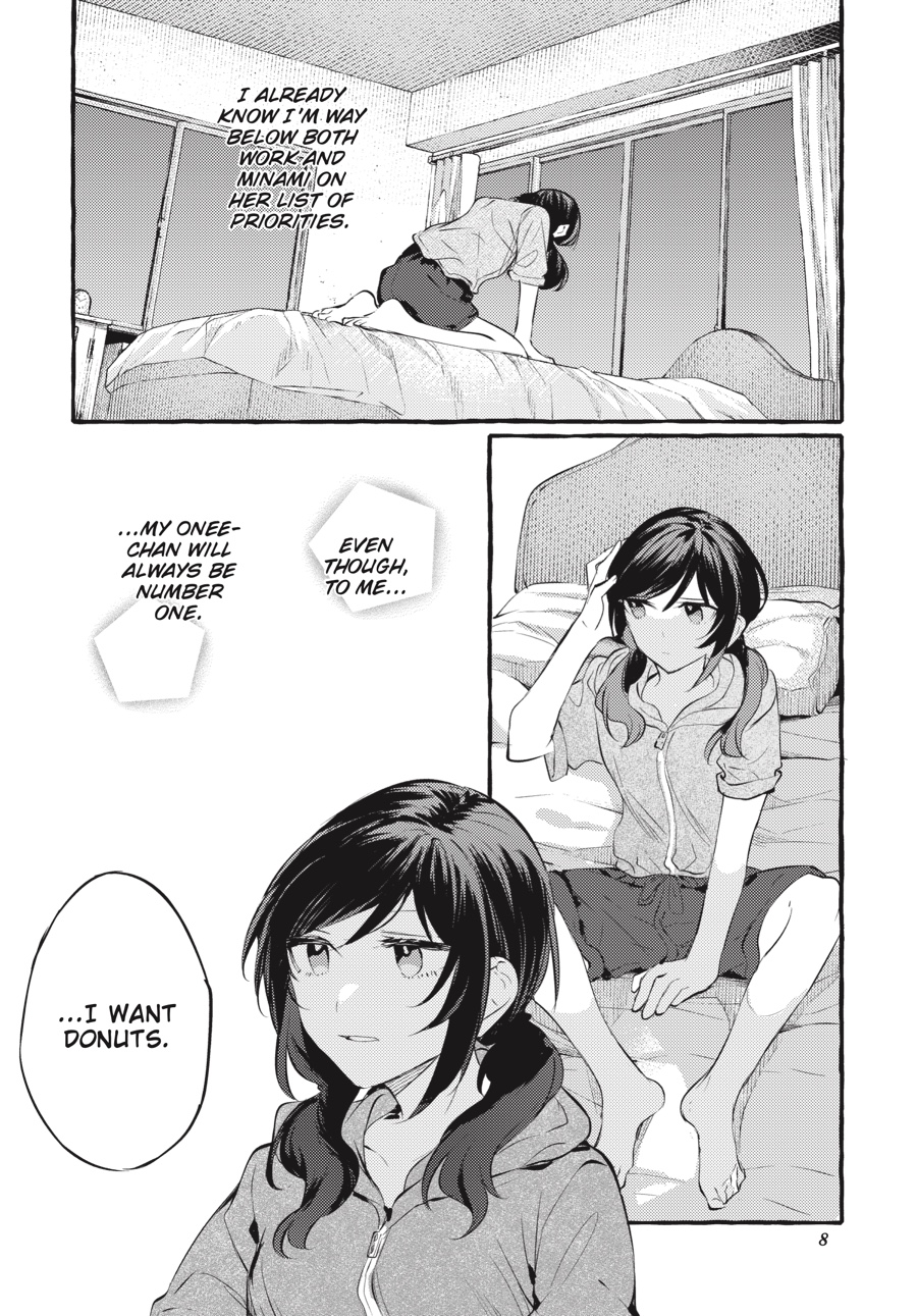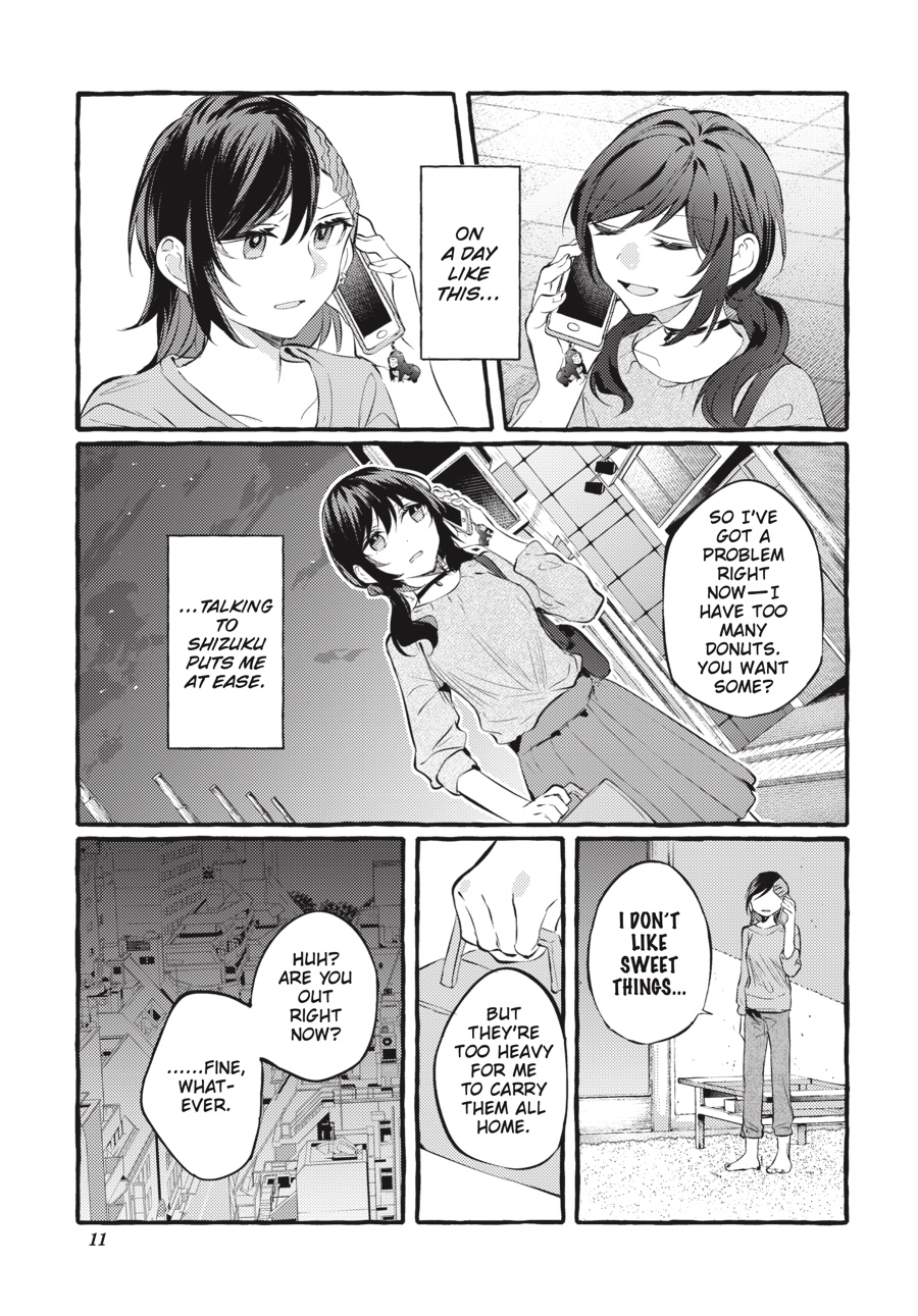 “What would I do at a time like this if I were an adult…?” Have you ever thought that—? If Saori had her way, her big sister Iori would always be beside her—where she could just reach out her hand and they’d touch, open her mouth and they’d talk. But now Iori has a girlfriend. And a job. And a lot less time for her little sis. Somehow, whenever she can’t be with her sister, Saori finds her classmate Shizuku—even though they seem to oscillate between friend and foe, stranger and confidant. Who exactly is that girl to her…?